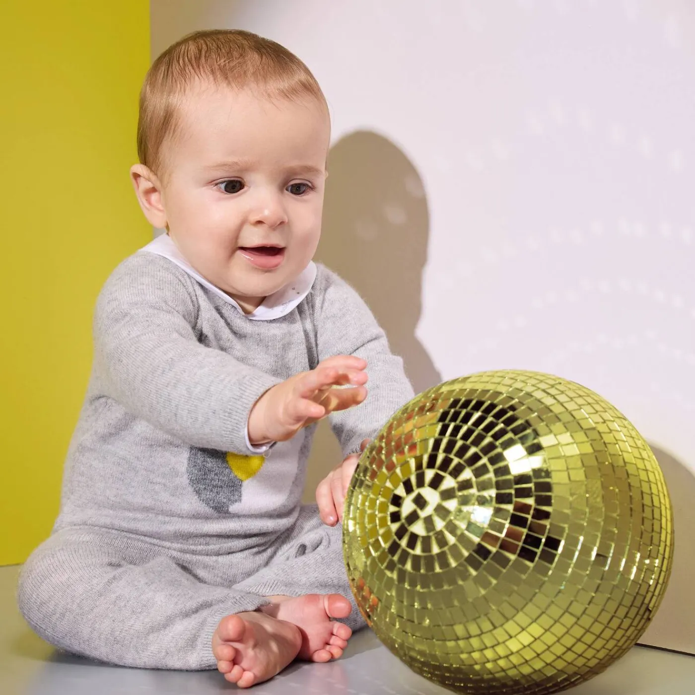 A baby jumpsuit with clean lines and soft colors for a chic, cozy winter. Animated by little bears cuddling in Intarsia …