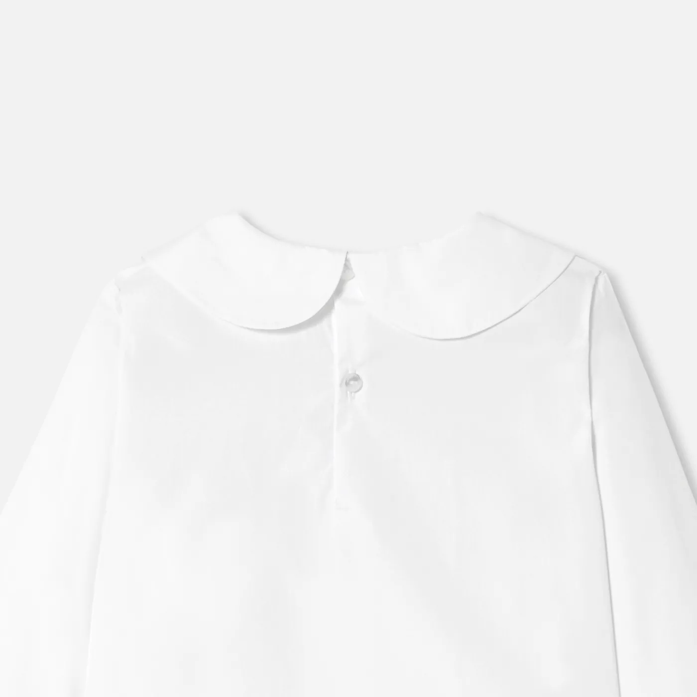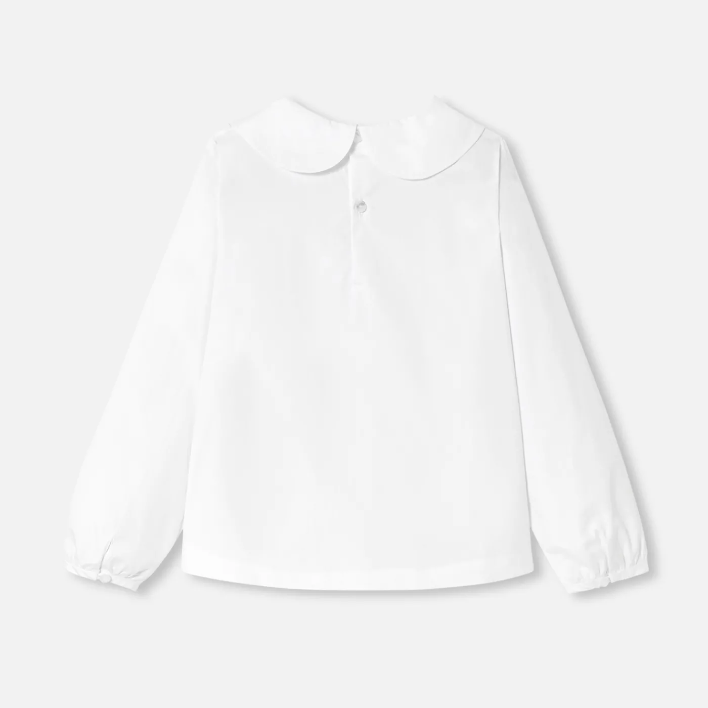This girl blouse has a chic, refined design. Made from cotton poplin, a pleated Peter Pan collar enhances this model, wh…