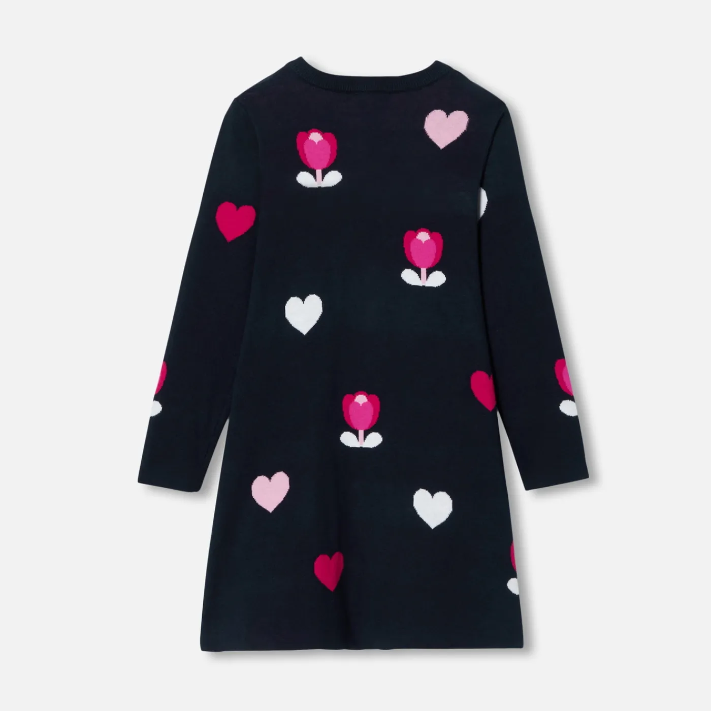 A chic, modern back-to-school look with this new long-sleeved dress for girls. Available in a jersey knit featuring flow…