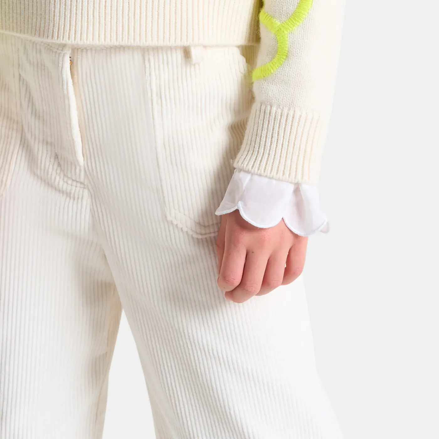 Available in corduroy, this fall girl trousers can be worn wide-legged and ankle-length for a Modernized silhouette. Wor…