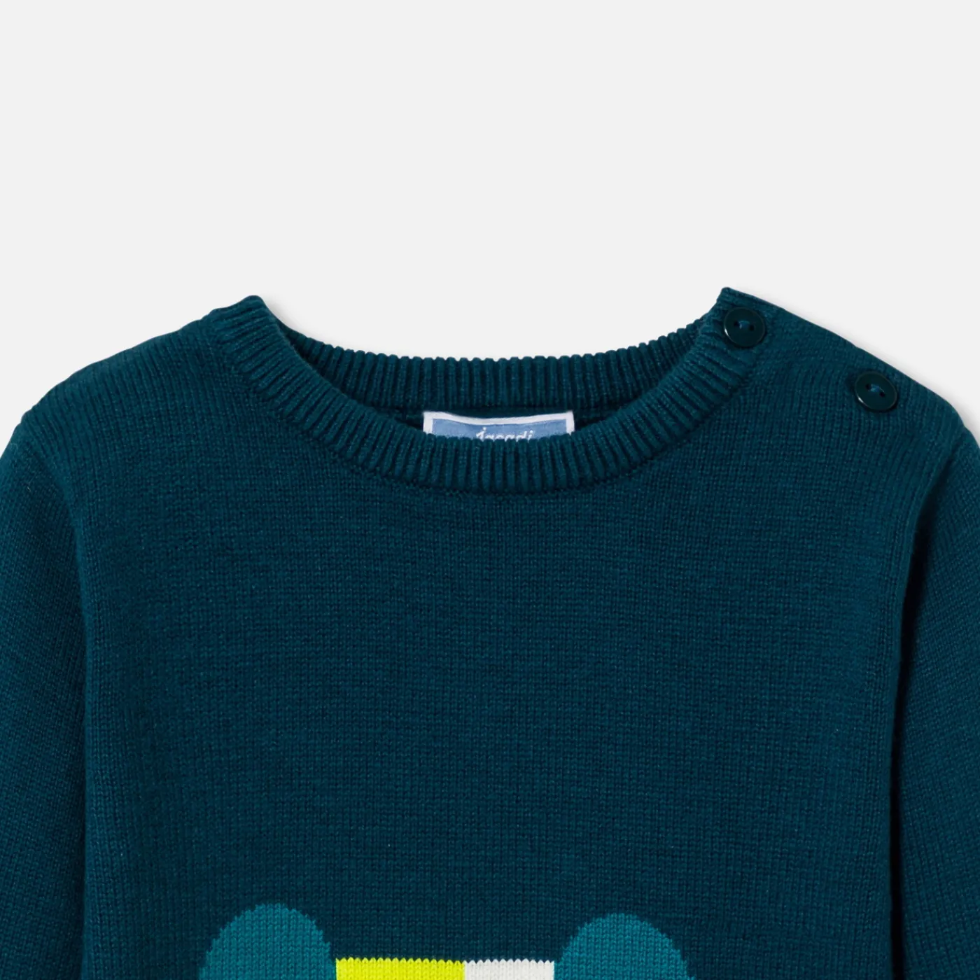 A modern and colorful fall with this baby boy sweater. Made from a soft, warm knit, it features an intarsia pattern with…