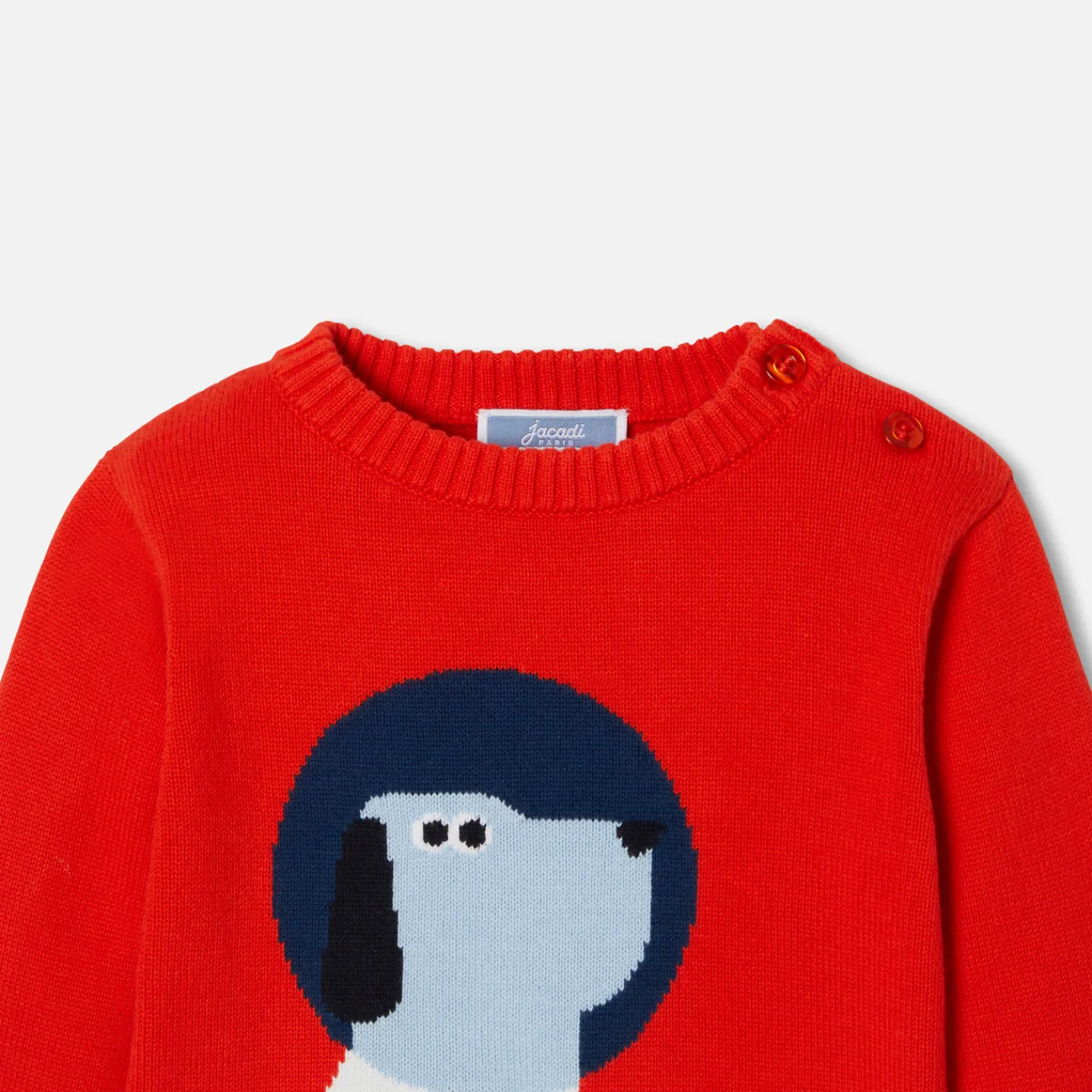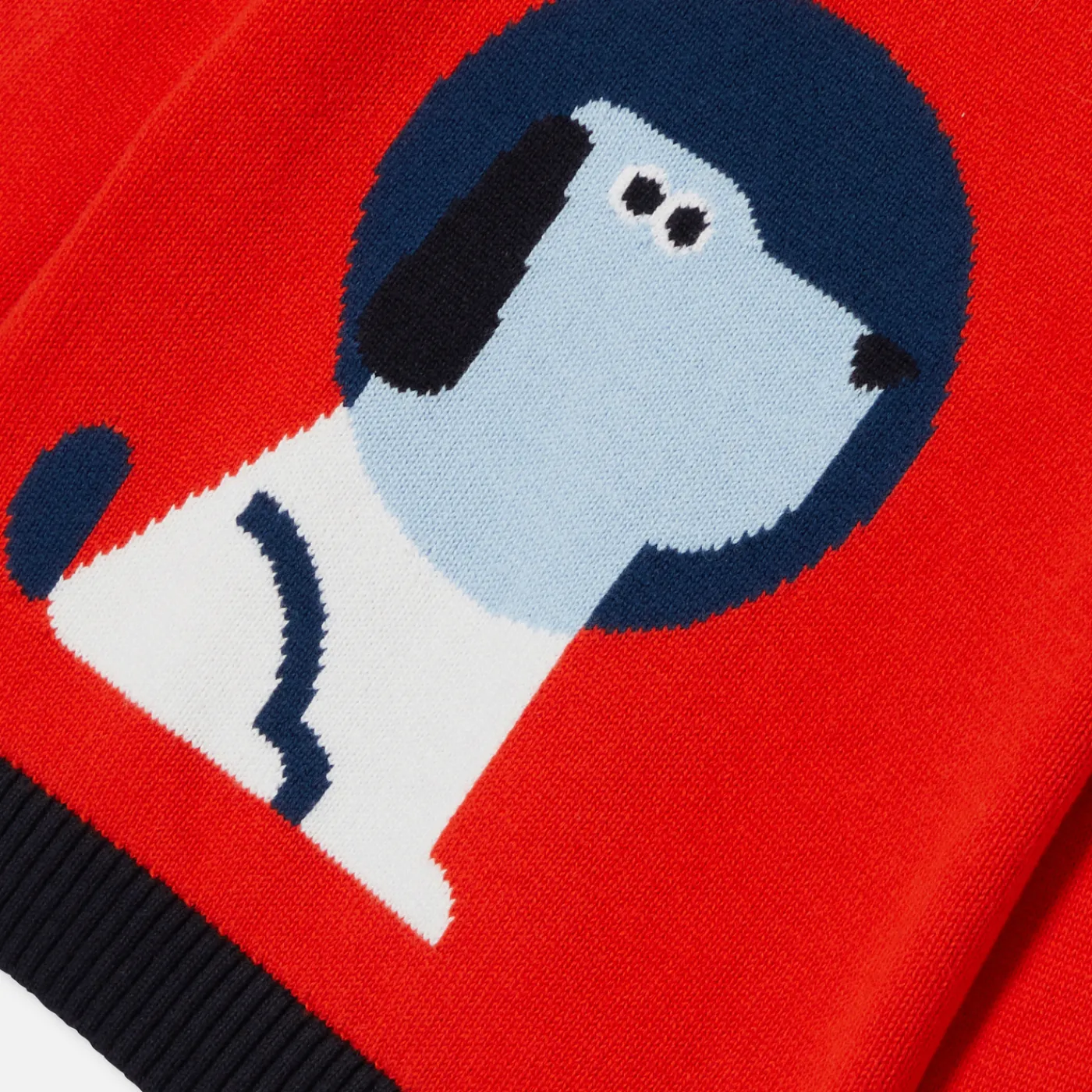The baby boy sweater sets off to conquer space with his cosmonaut dog in intarsia. Made from soft, cozy organic cotton, …