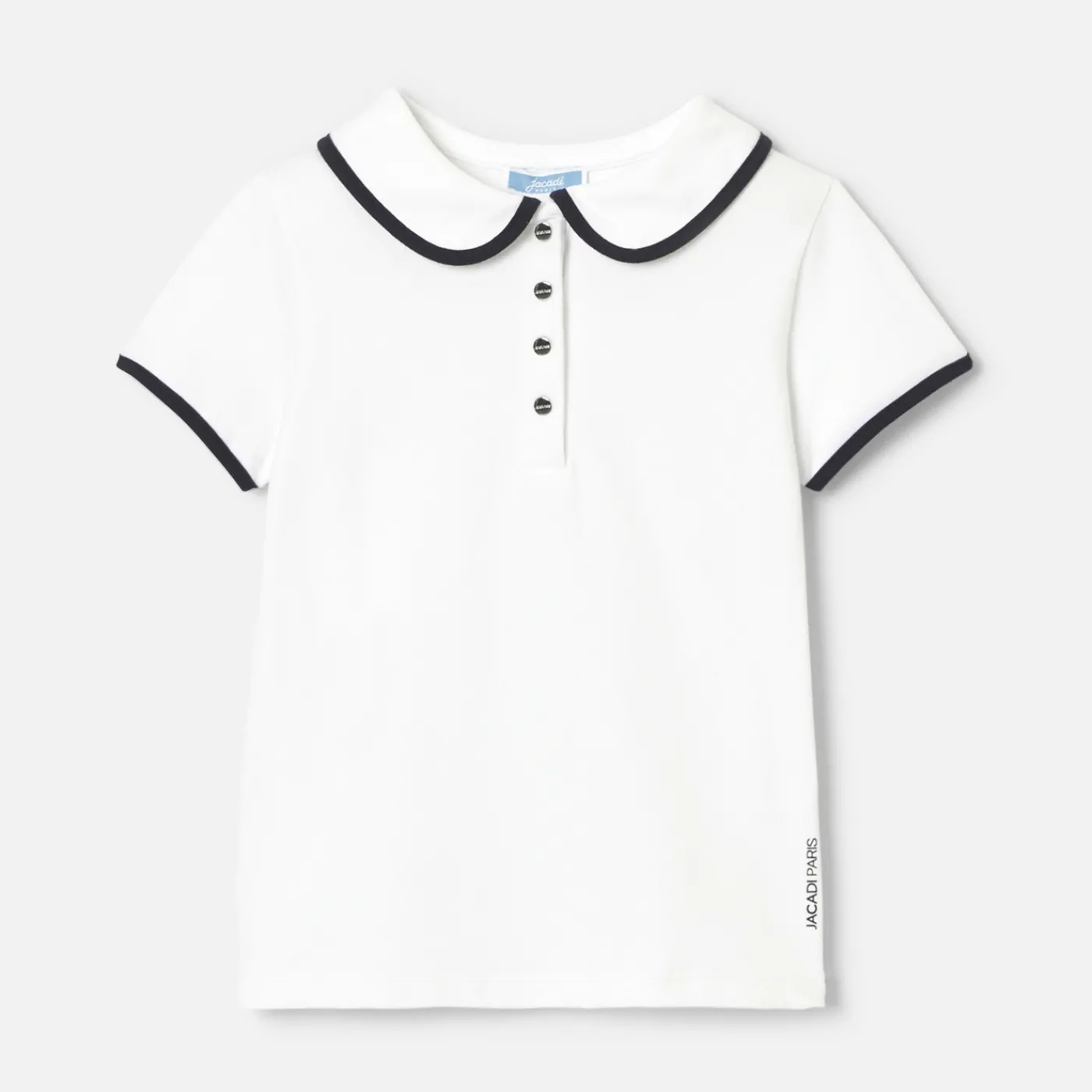 This girl polo shirt gains in elegance with its Claudine collar and contrasting finishes. In cotton piquéand buttoned a…