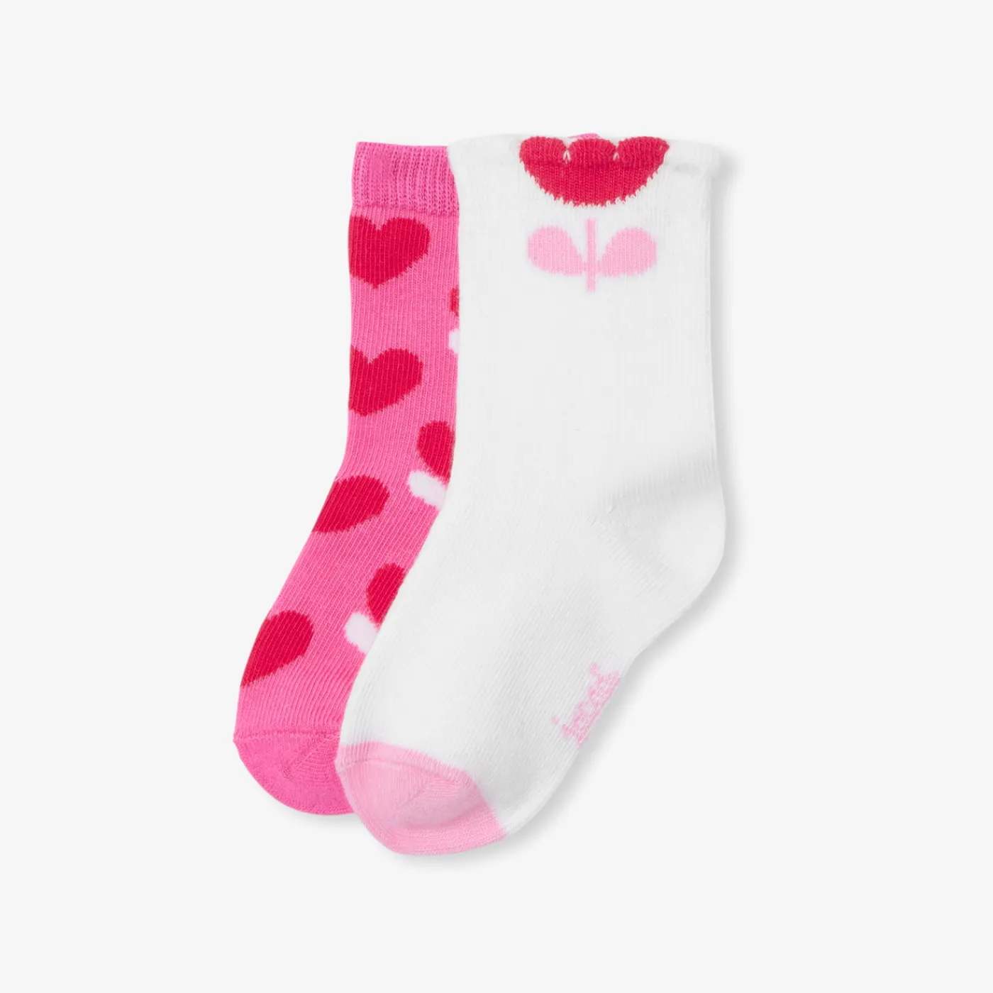 Tulips and little hearts liven up this duo of baby girl socks. Modern and colorful, they will slip nicely into trainers …