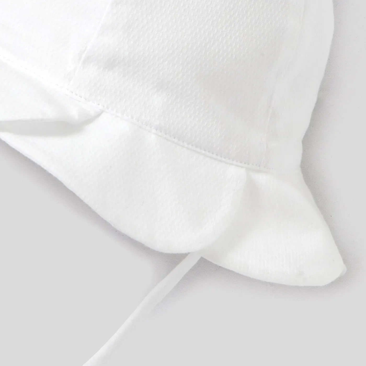 Made from cotton piqué and lined, this baby girl hat is adorned with a petal outline. Featuring tie fastenings, this ha…