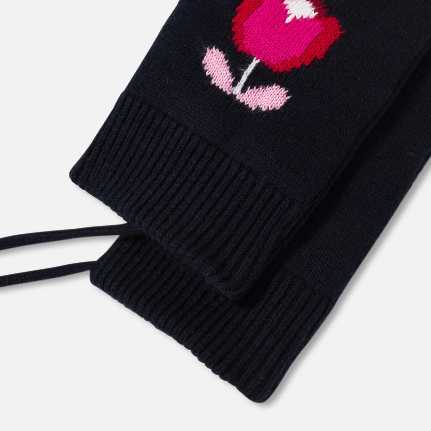 Soft and covering, this winter baby girl mittens are lined in fleece and decorated with pretty jacquard tulips. Tied wit…