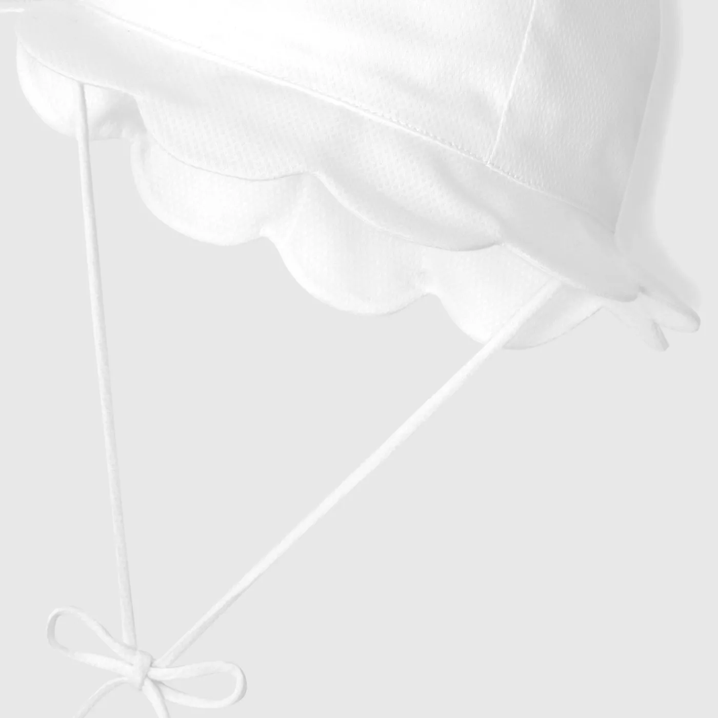 Beautifully scalloped, this baby girl hat in cotton piqué is lined in poplin. A must-have to protect your little one fr…
