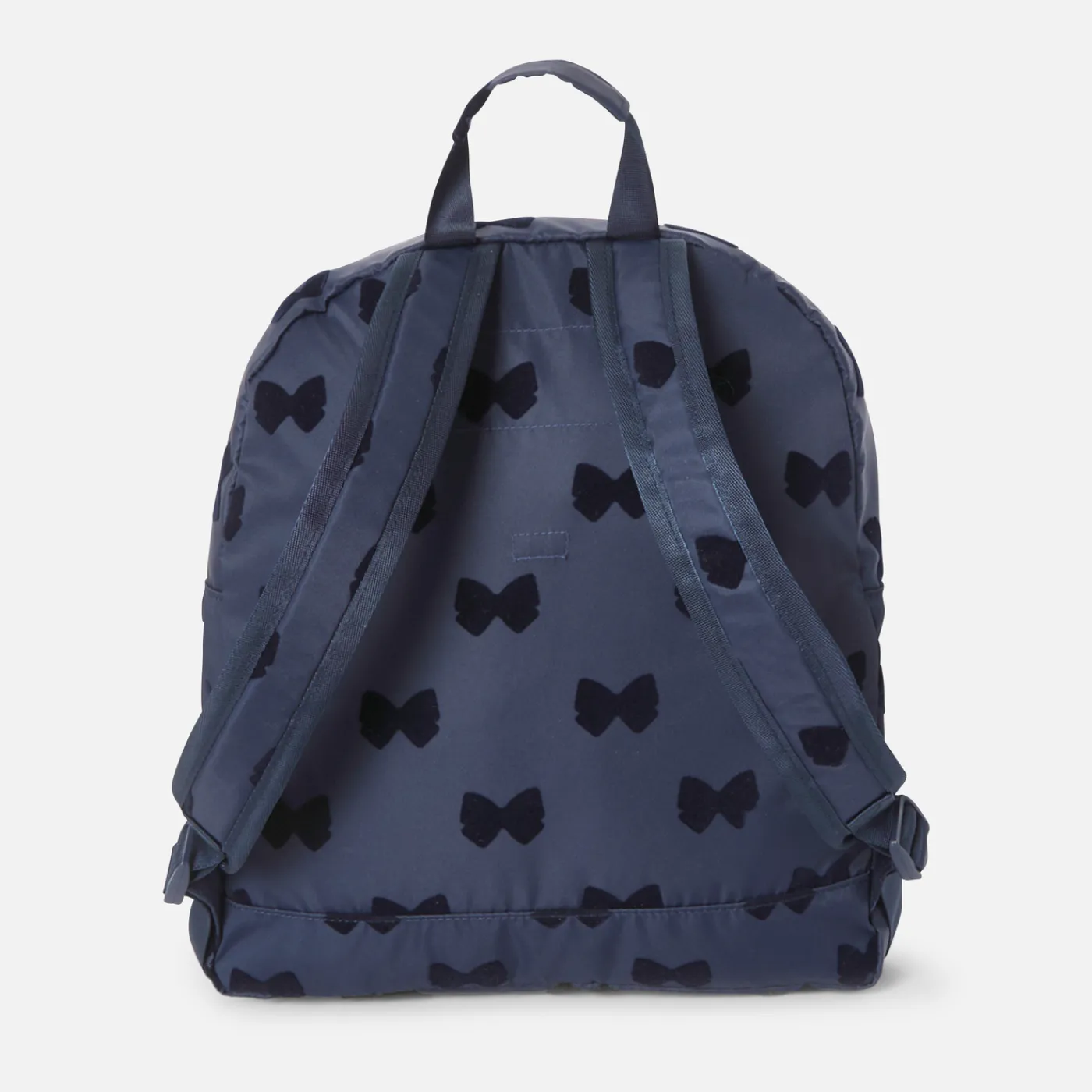 Her first day of kindergarten will be a stylish one with this backpack. Flocked with a delightful velvet bow motif, it f…
