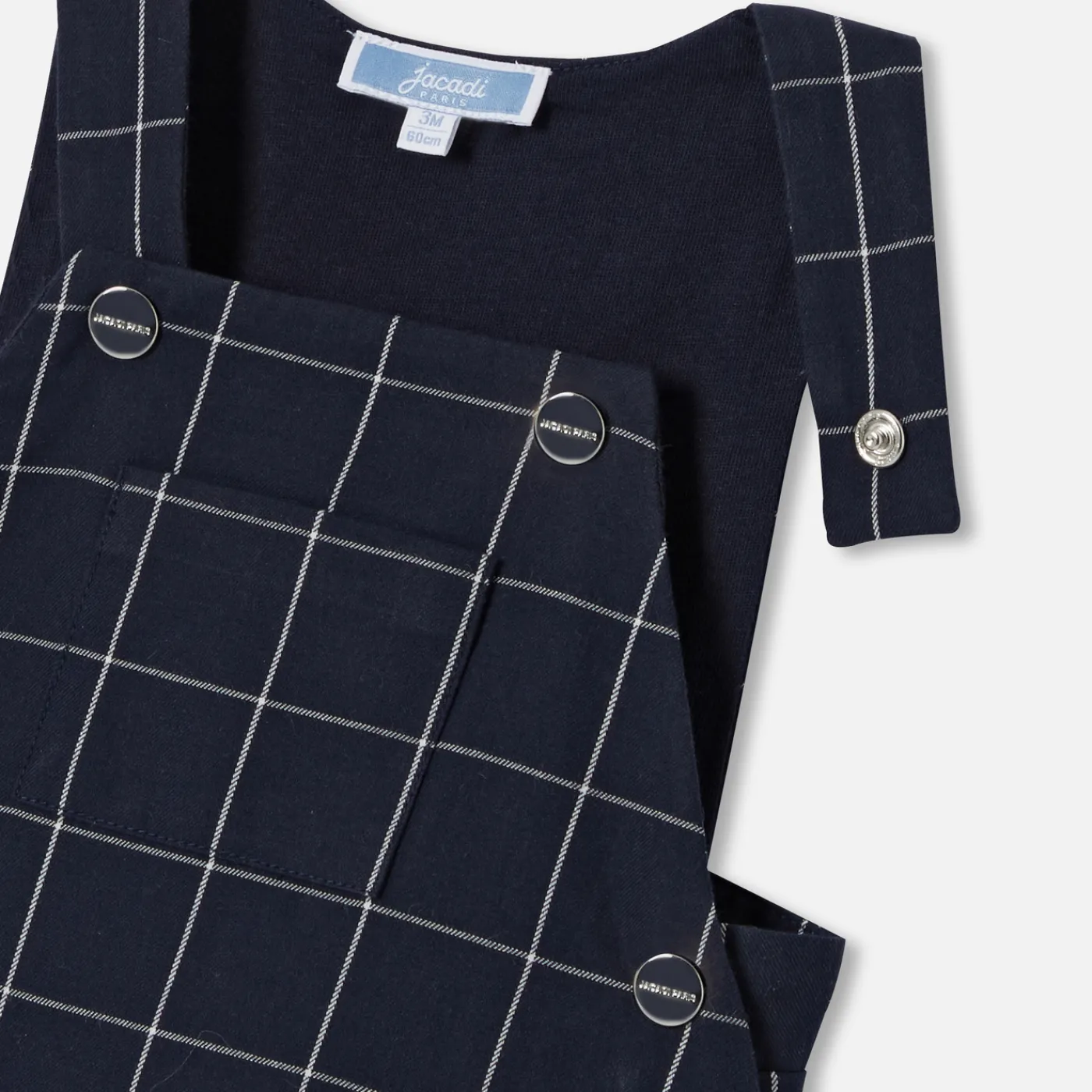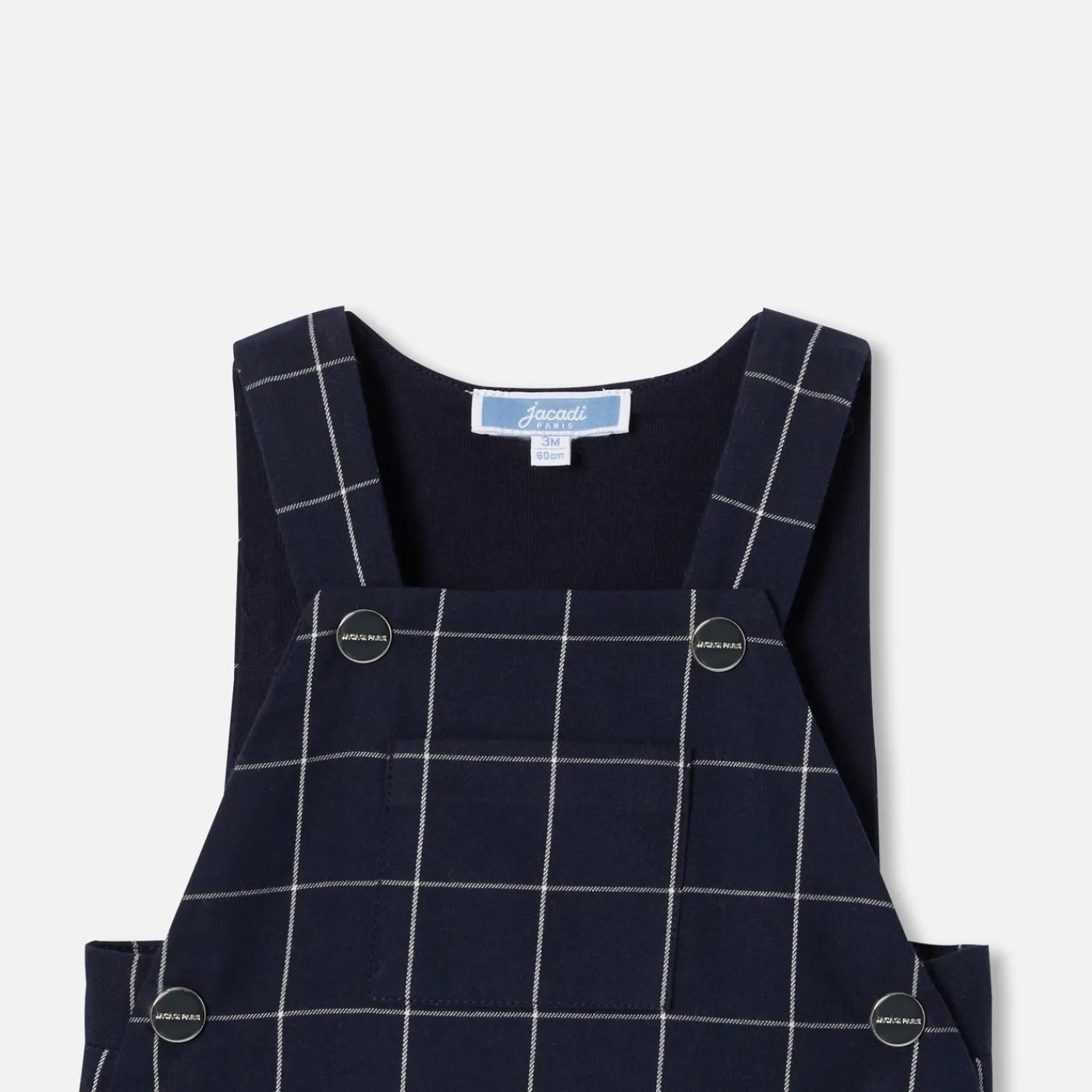 Impeccably cut and impeccably manufactured, these baby boy overalls stand out with their elegant check pattern. Lined in…