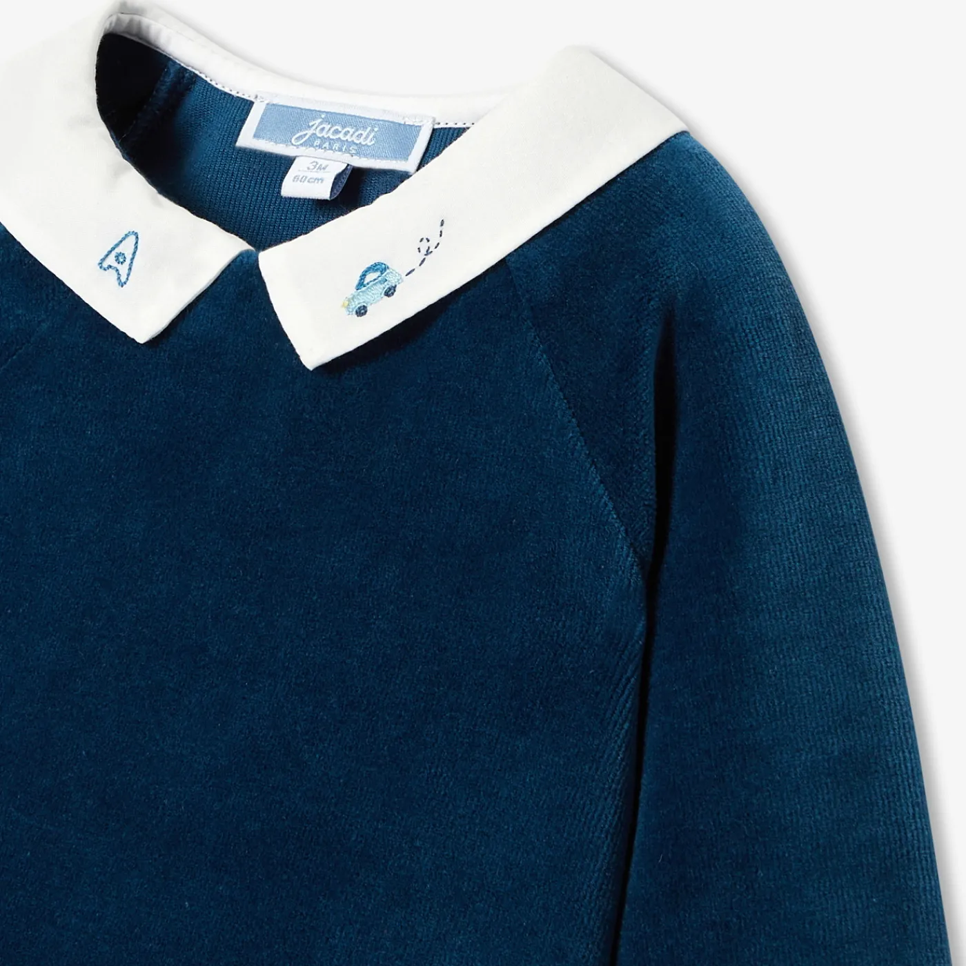 – Hand-embroidered poplin collar