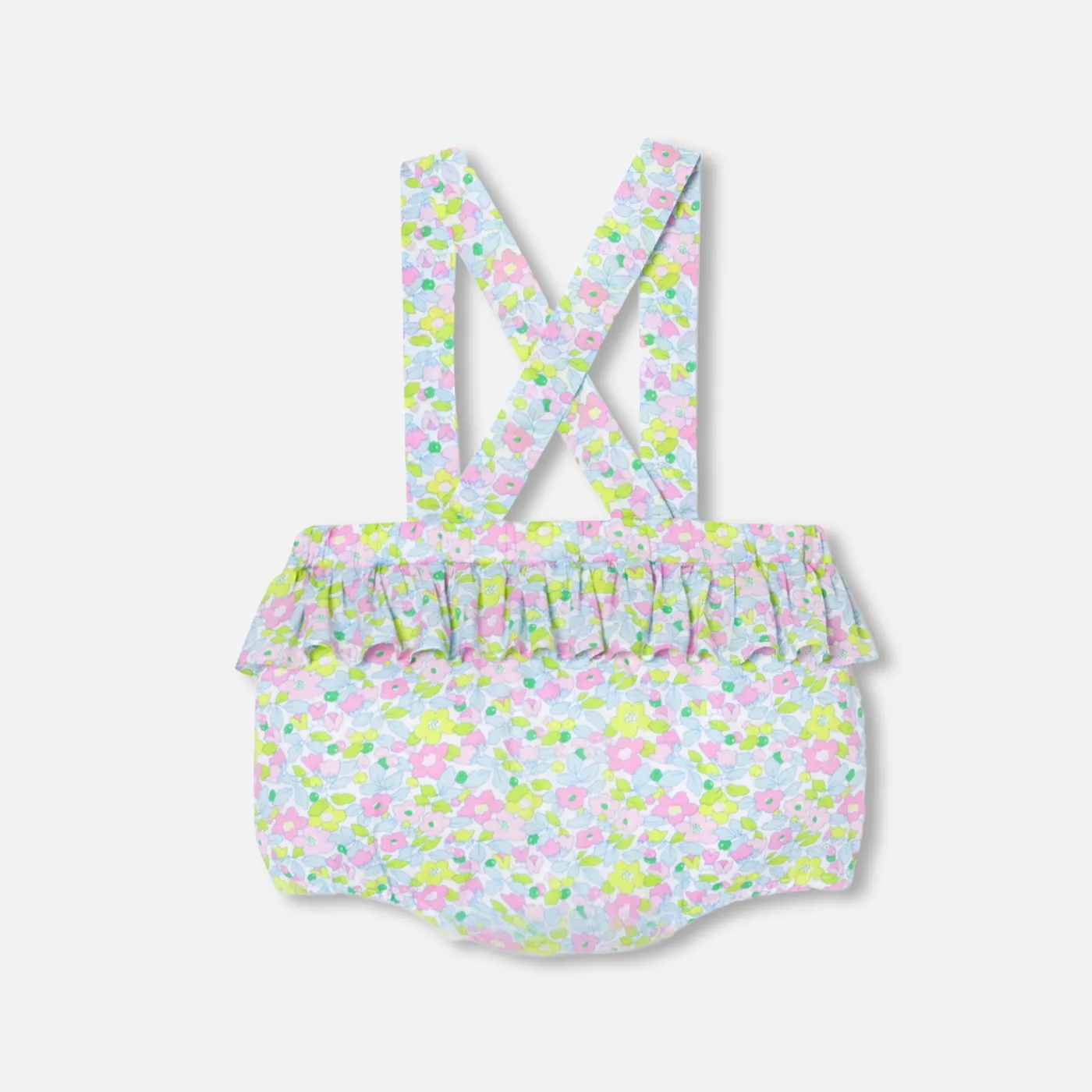 Vibrant Liberty fabric, soft poplin and criss-cross straps bring this iconic baby girl bloomer to life. Lined and featur…