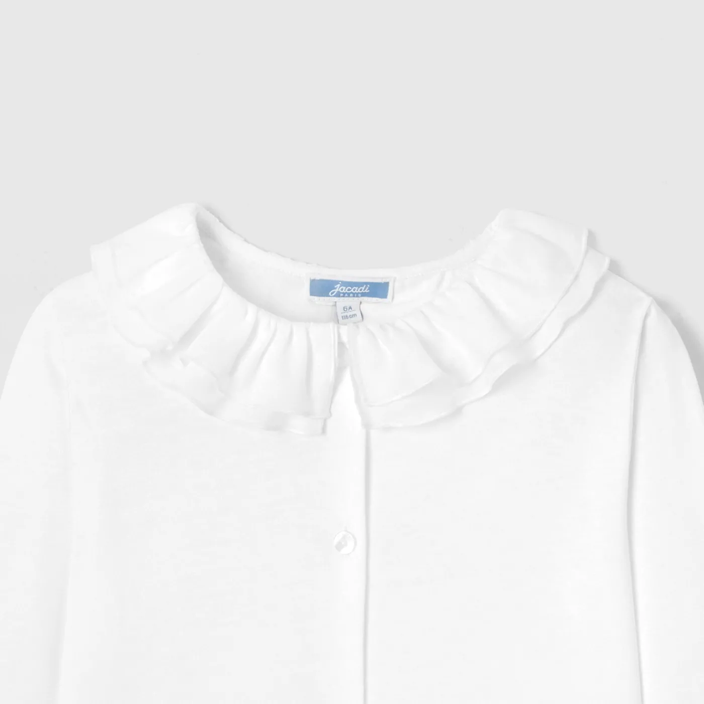 Jacadi radiates French elegance with this girl blouse. In soft, comfortable jersey knit, a gathered collar in cotton voi…