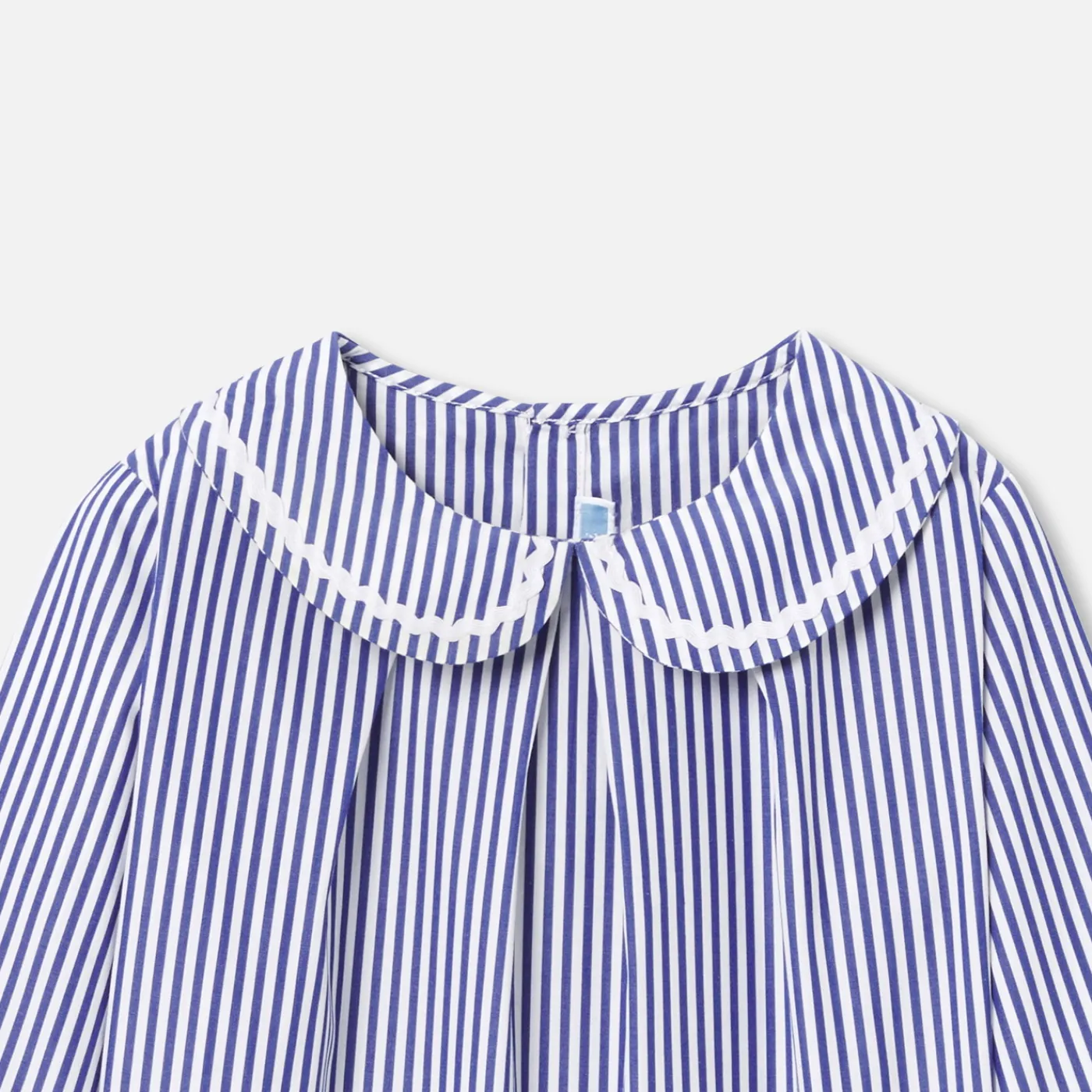 A chic, authentic silhouette with this girl blouse. Made from striped cotton poplin, it features a Peter Pan collar with…