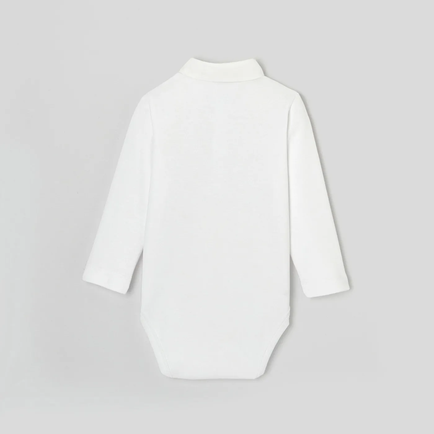 A wardrobe essential, this baby boy bodysuit can be worn long-sleeved for the start of the season. Under a sweater or ca…