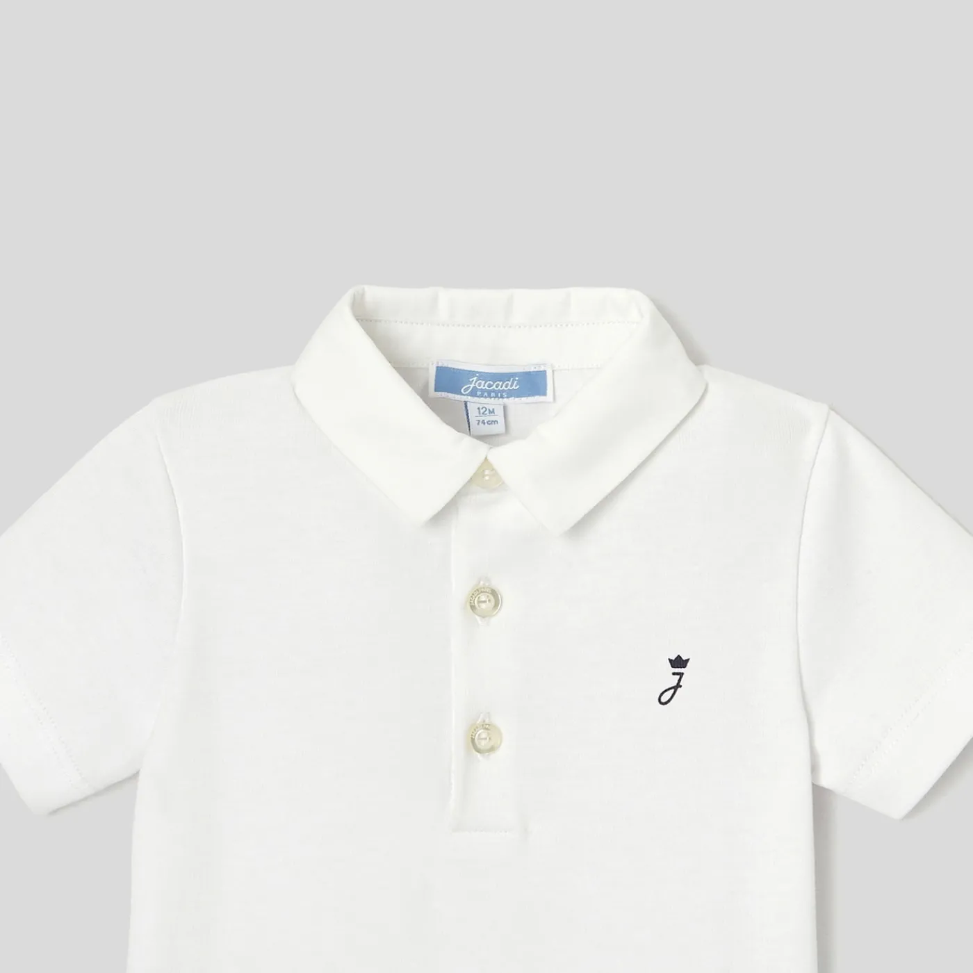 This baby boy bodysuit will keep baby company all summer long. Made from organic cotton and enhanced with an elegant Oxf…