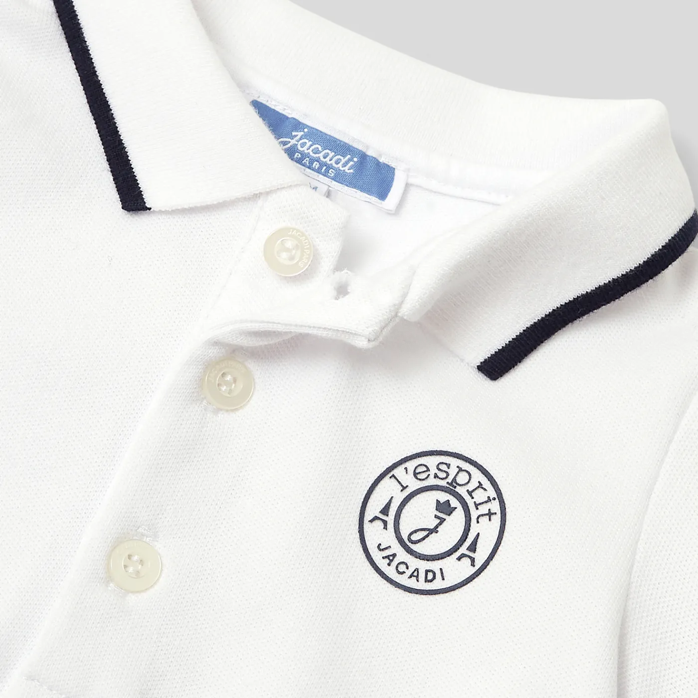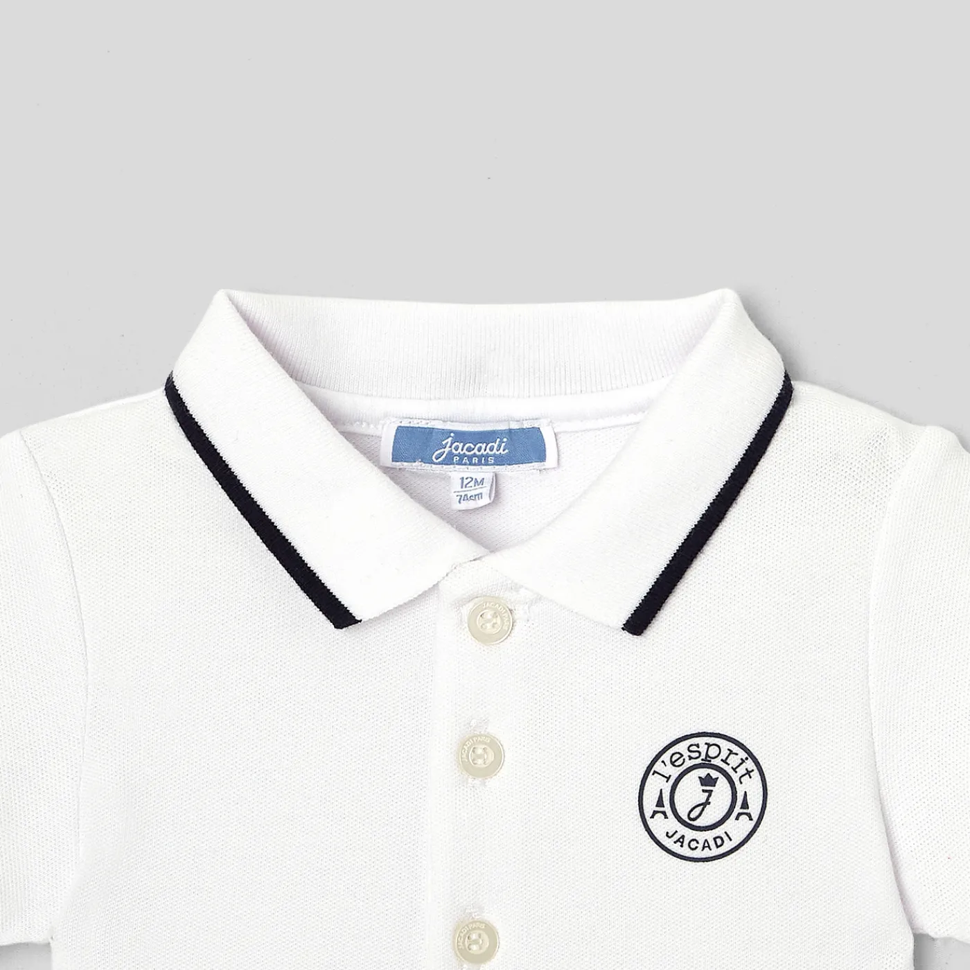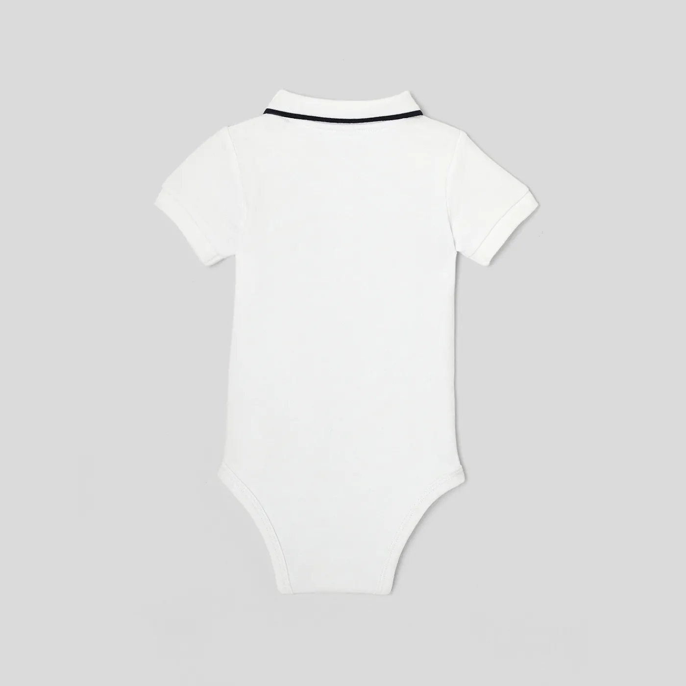 The essential baby boy bodysuit gains a modern edge with its polo cut. Wear with colorful shorts or paired with rolled-u…