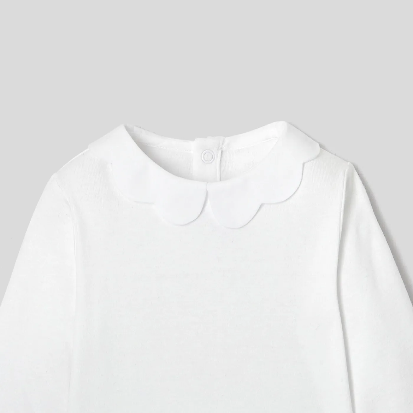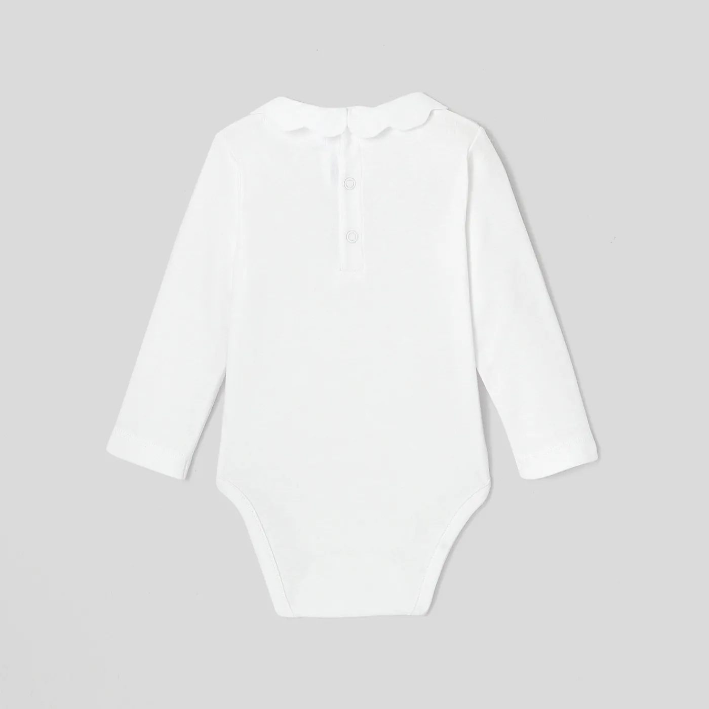 This baby girl bodysuit adorned with a scalloped collar will bring charm and elegance to everyday outfits. Easy to slip …