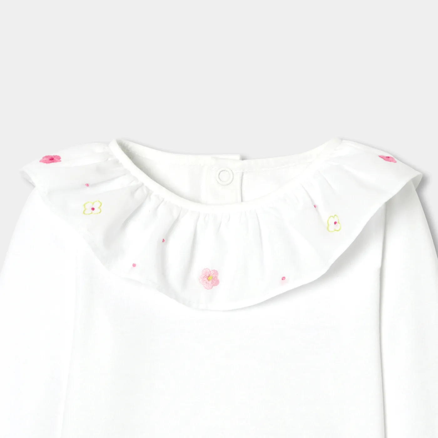 An embroidered ruffle has been added to this baby girl bodysuit. Made from organic cotton and with long sleeves, this mo…