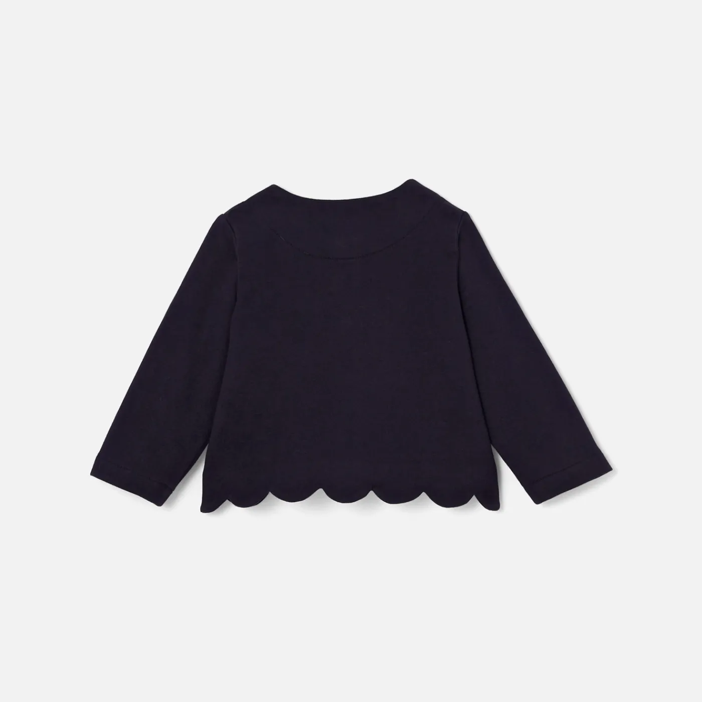 A wardrobe essential made in organic fleece, this baby girl cardigan offers a modern, refined cut. Scalloped at the base…