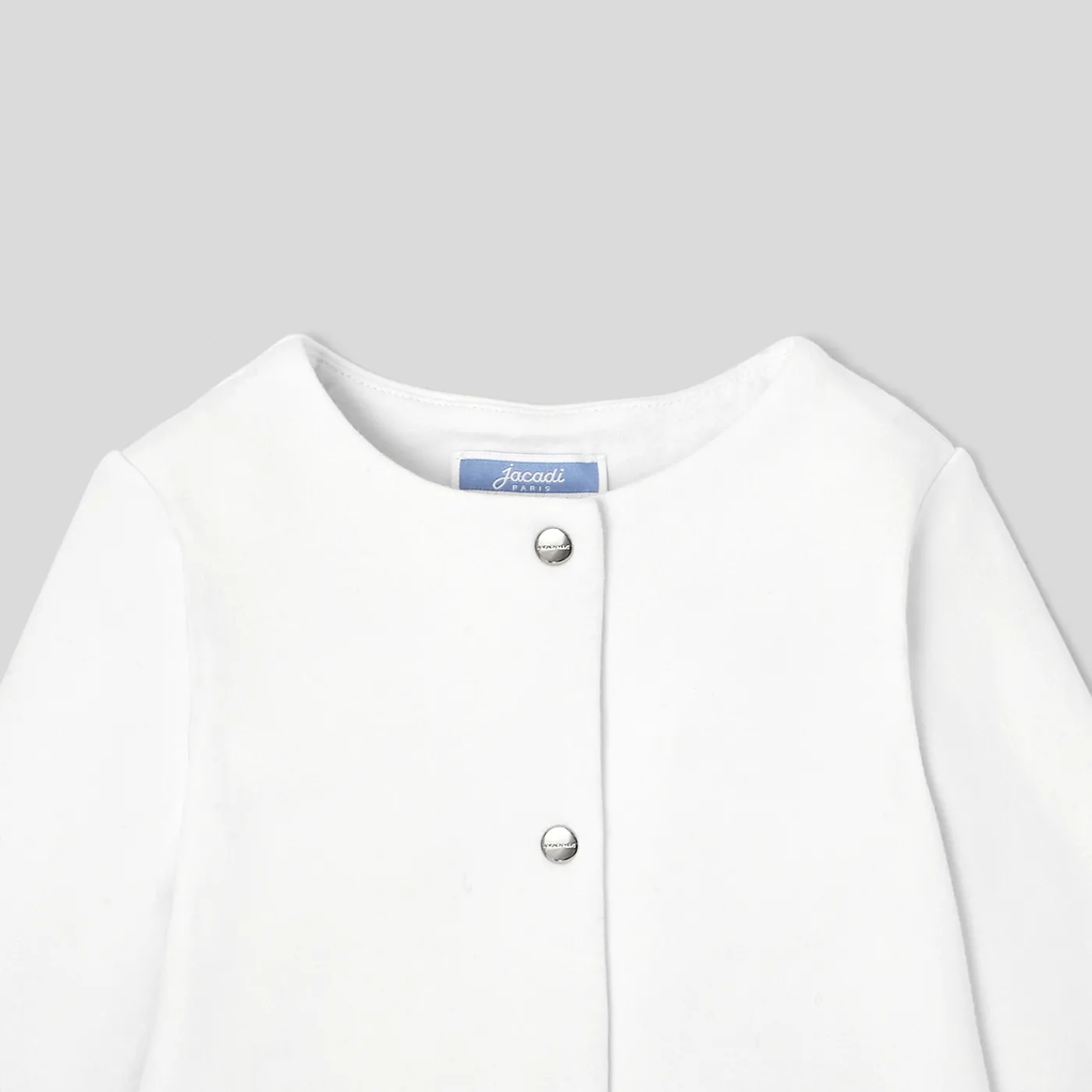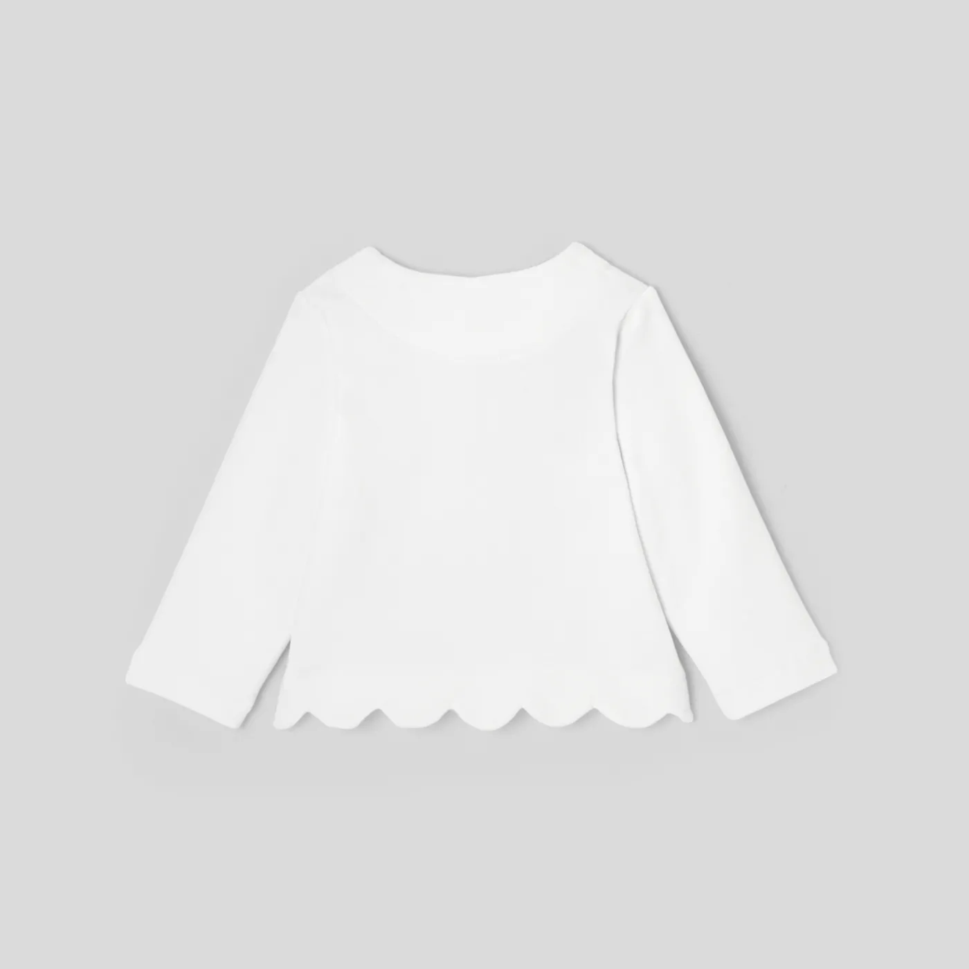 A wardrobe essential made in organic fleece, this baby girl cardigan offers a modern, refined cut. Scalloped at the base…