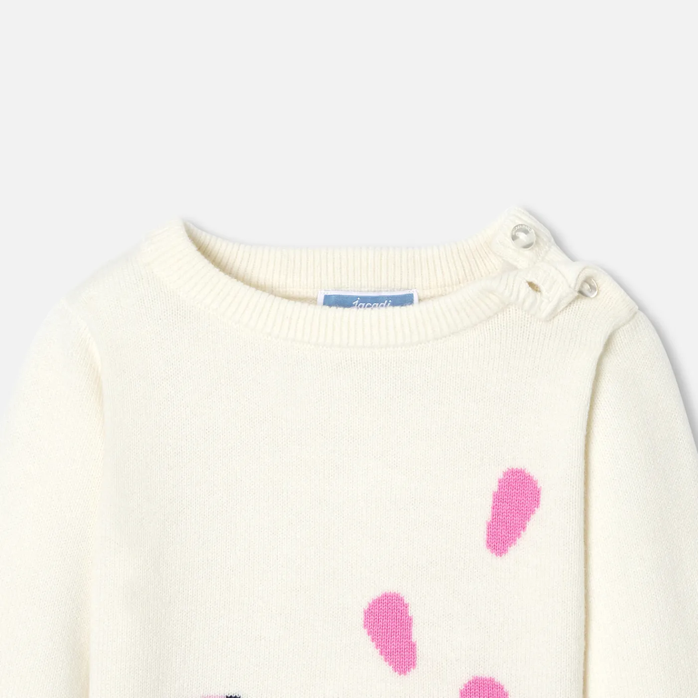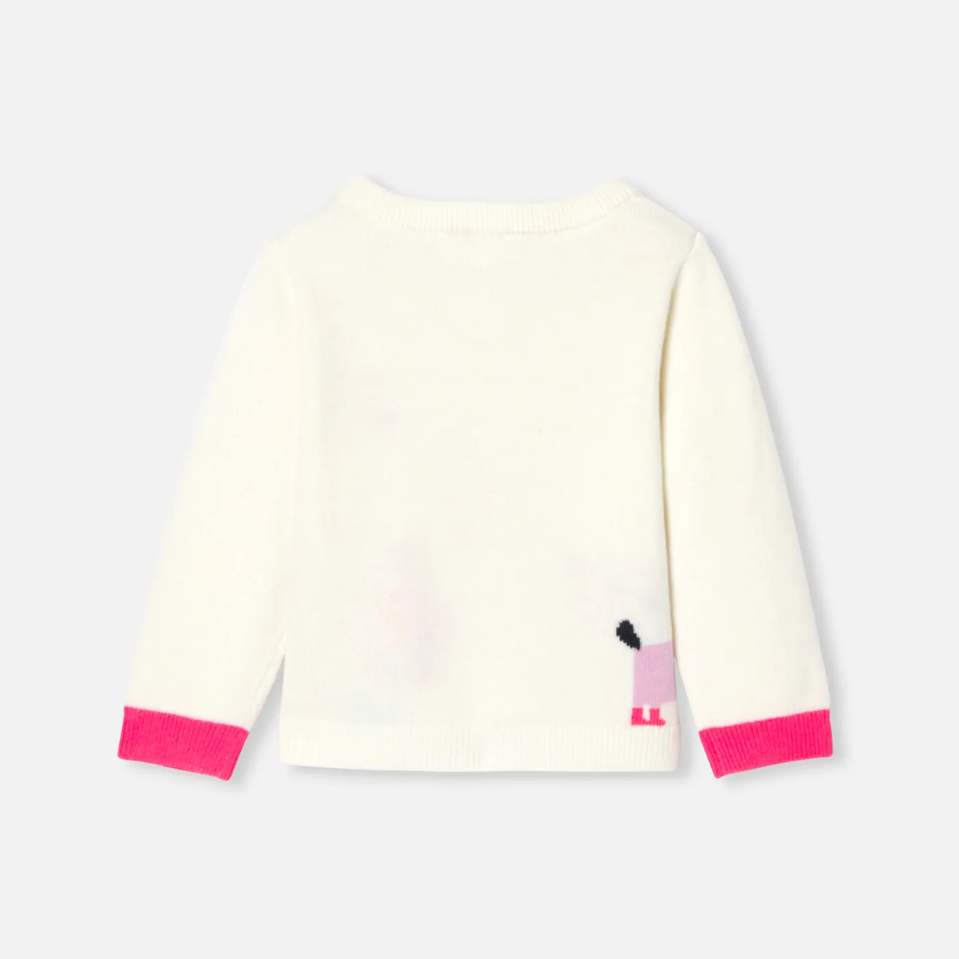 Warm and cozy, this baby girl sweater is available in wool and cashmere for the start of the season. Featuring a dog and…