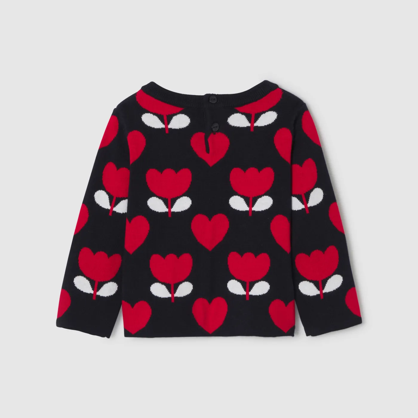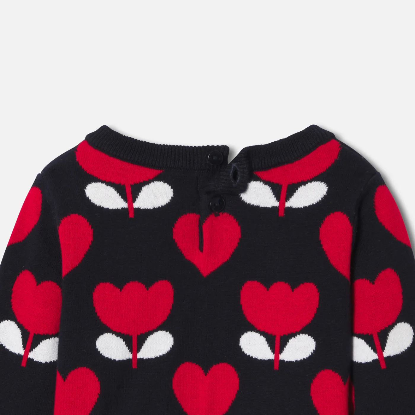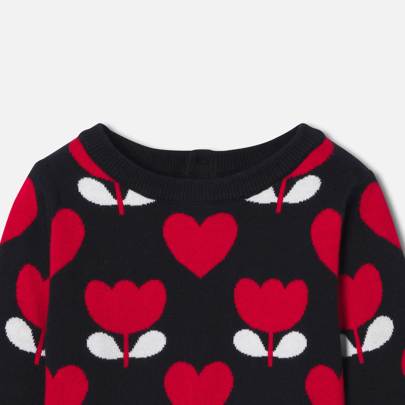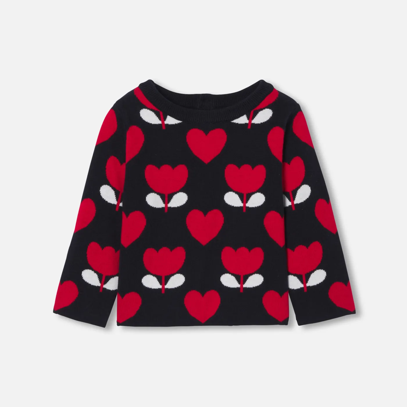 Jacadi has designed a baby girl sweater with modern jacquard for a cheerful, colorful everyday look. In a soft knit, tul…