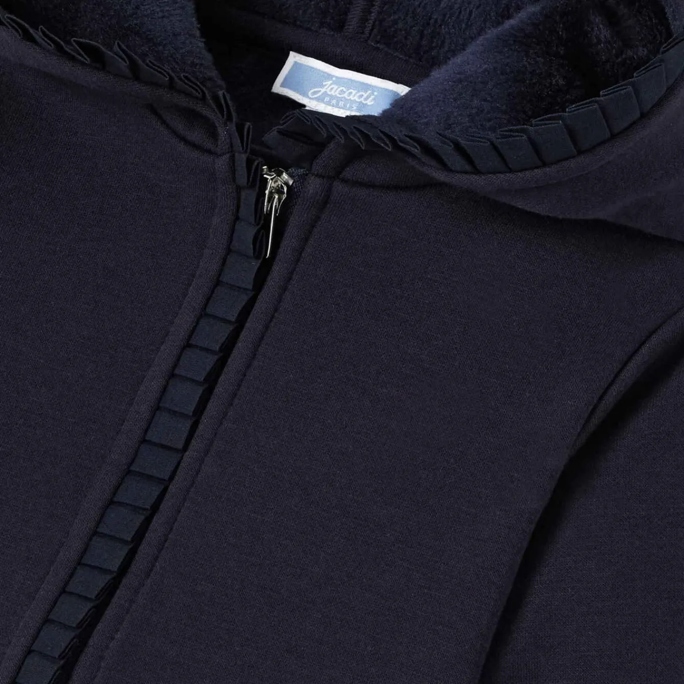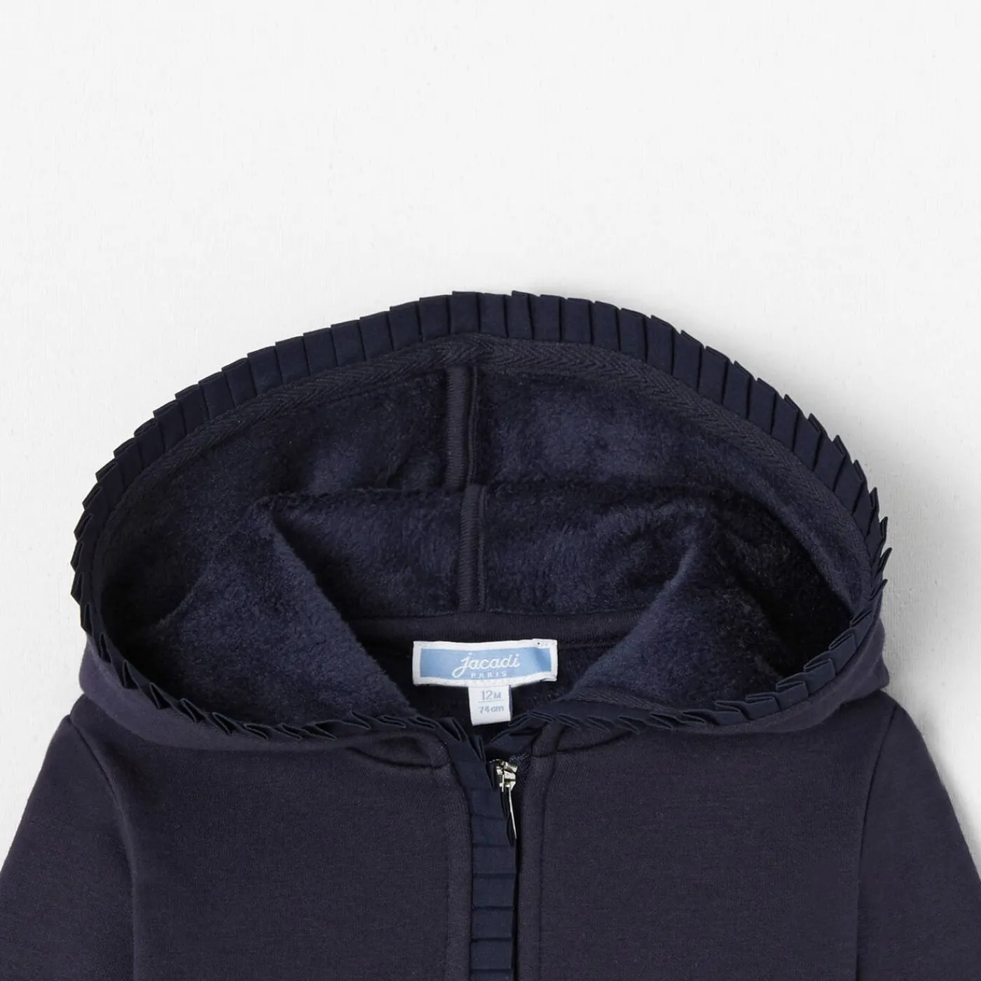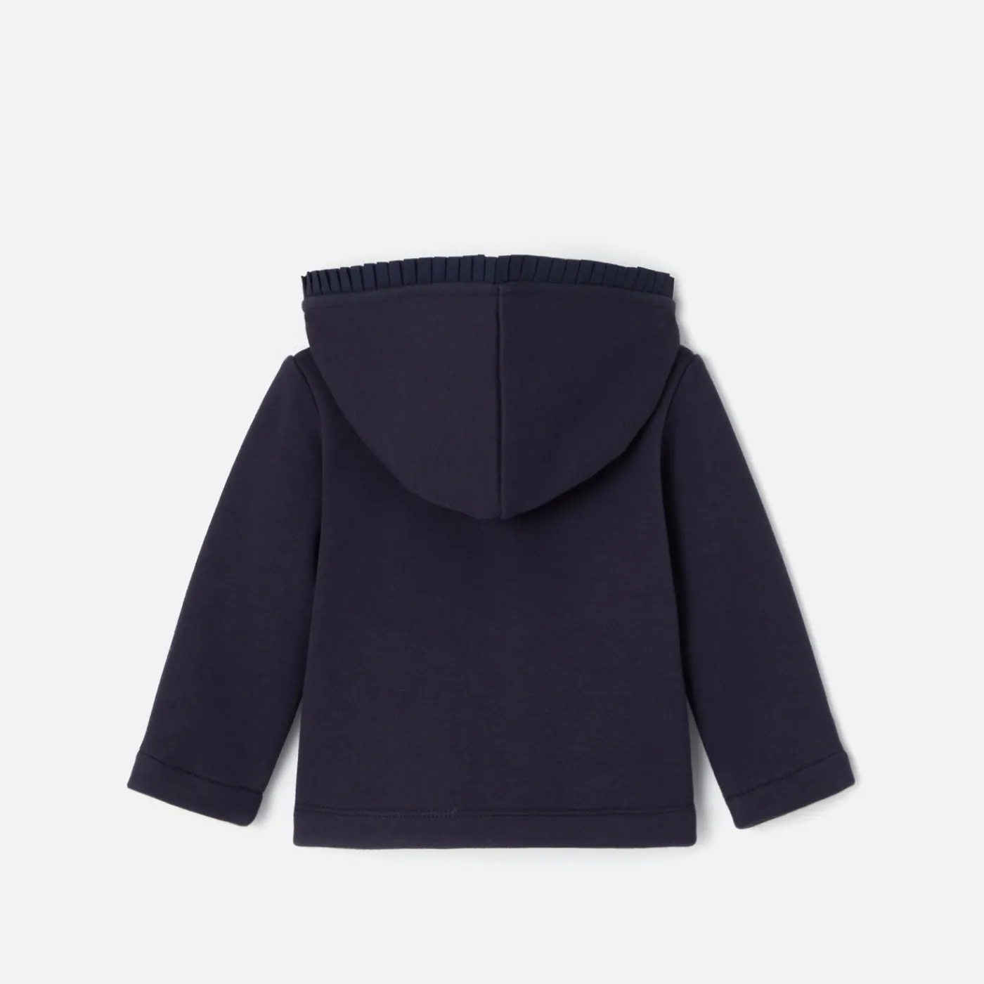 Ideal for warming up an outfit, this baby girl zipped sweatshirt comes in soft, supple fleece. Featuring a hood and easy…