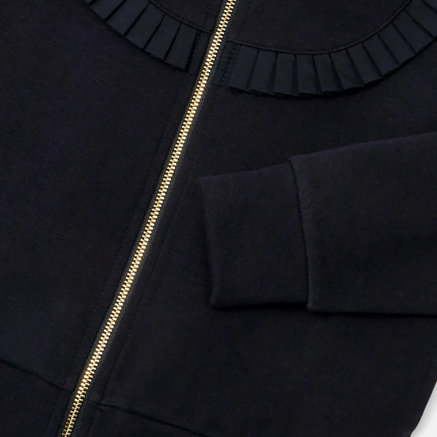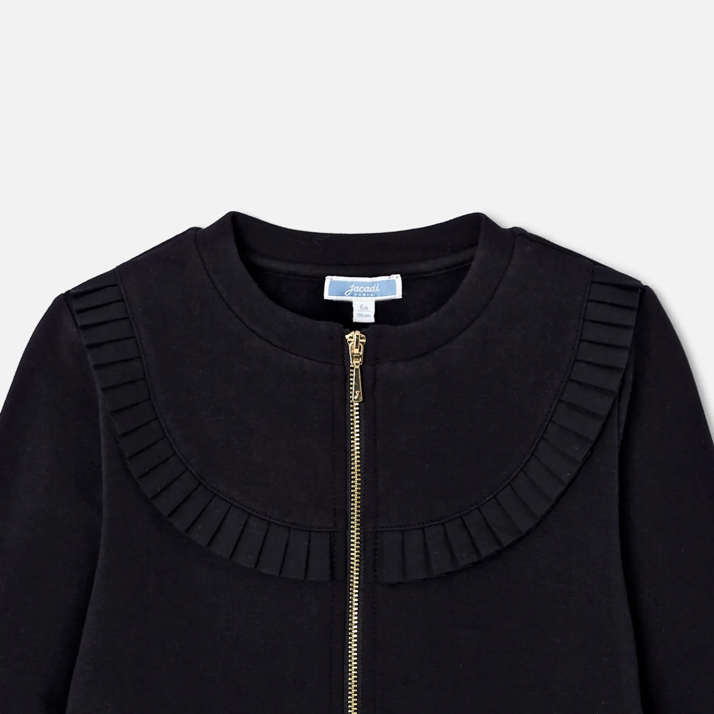 Adorned with a ruching detail on the neckline, this girl zipped cardigan comes in soft, comfortable fleece. Easy to slip…