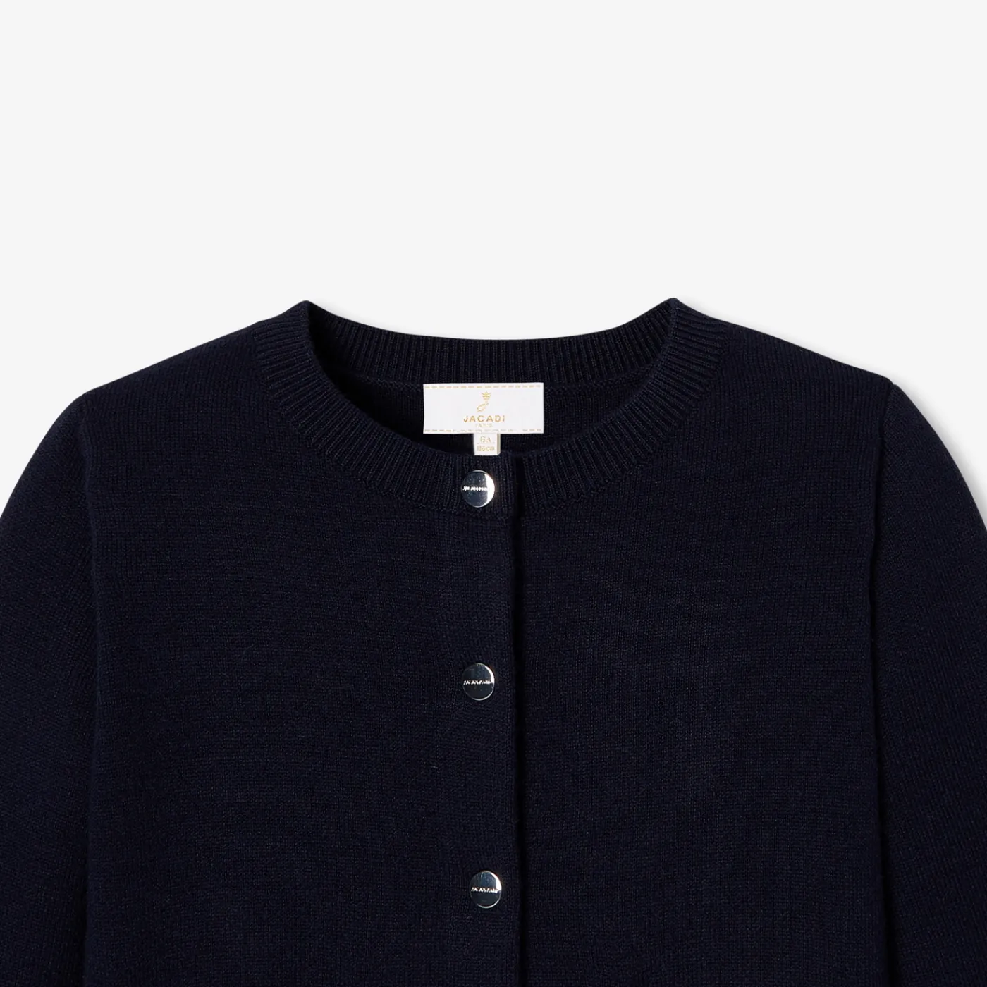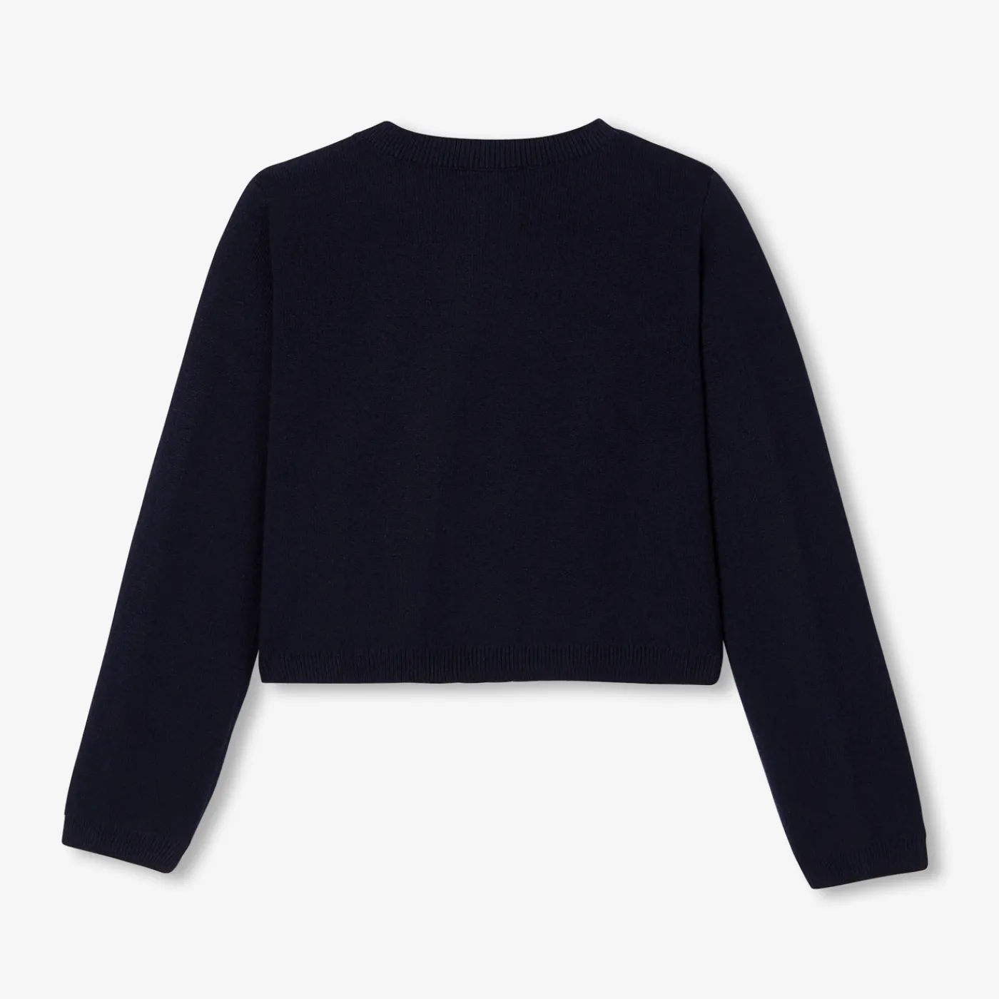 A classic reinterpreted with a shortened cut, this short cardigan for girls has been designed as a knitted jacket for th…