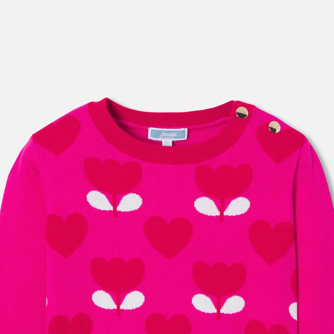 This season sweatertakes you into a colorful, retro pop world. Tinted a lively pink, an original tulip motif makes a spl…