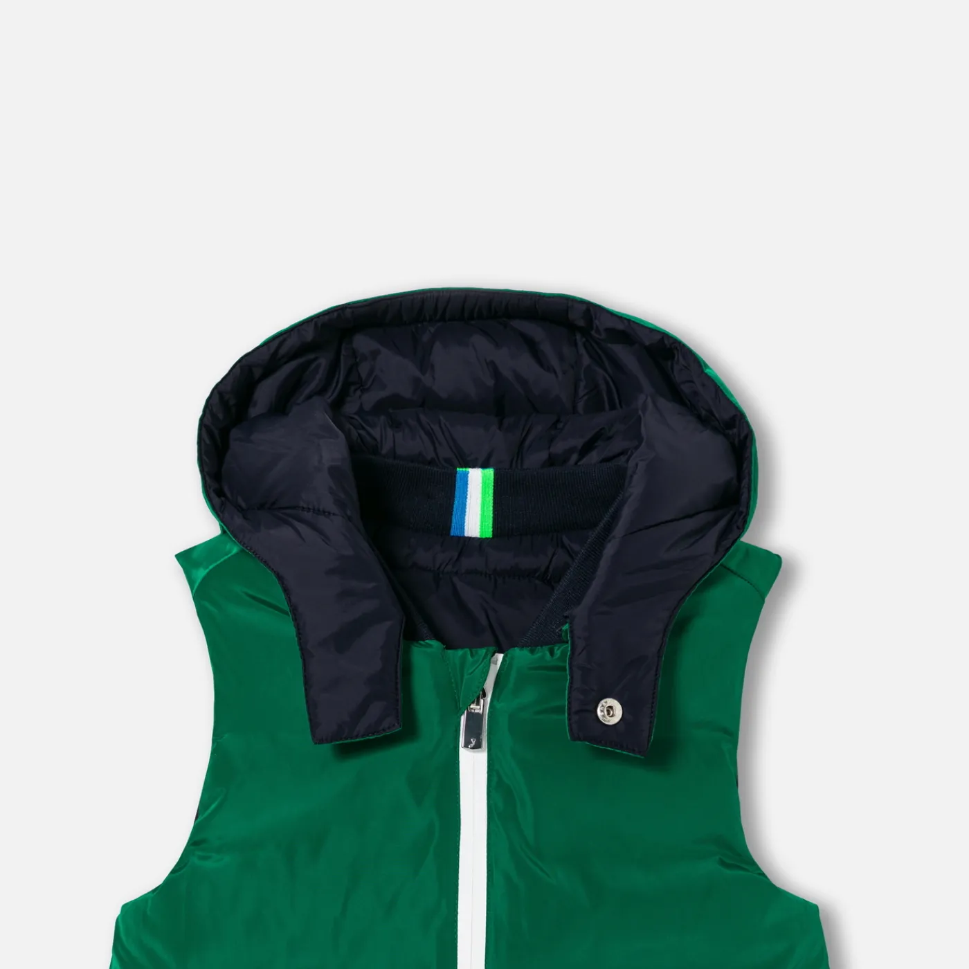 Sporty, chic and smart, this boy sleeveless puffy jacket is a big hit thanks to its reversible function. Made from highl…