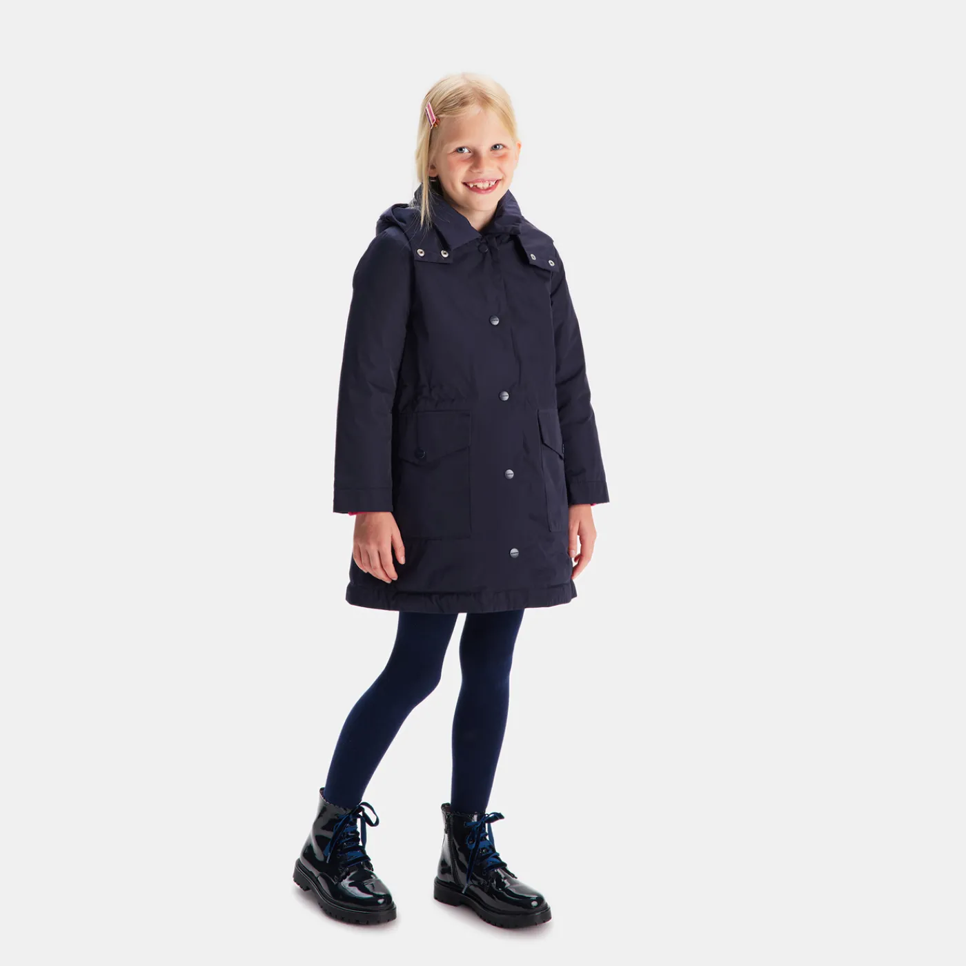 This girl windproof parka is a must-have for every outing. Worn straight cut or more fitted thanks to its drawstrings, l…