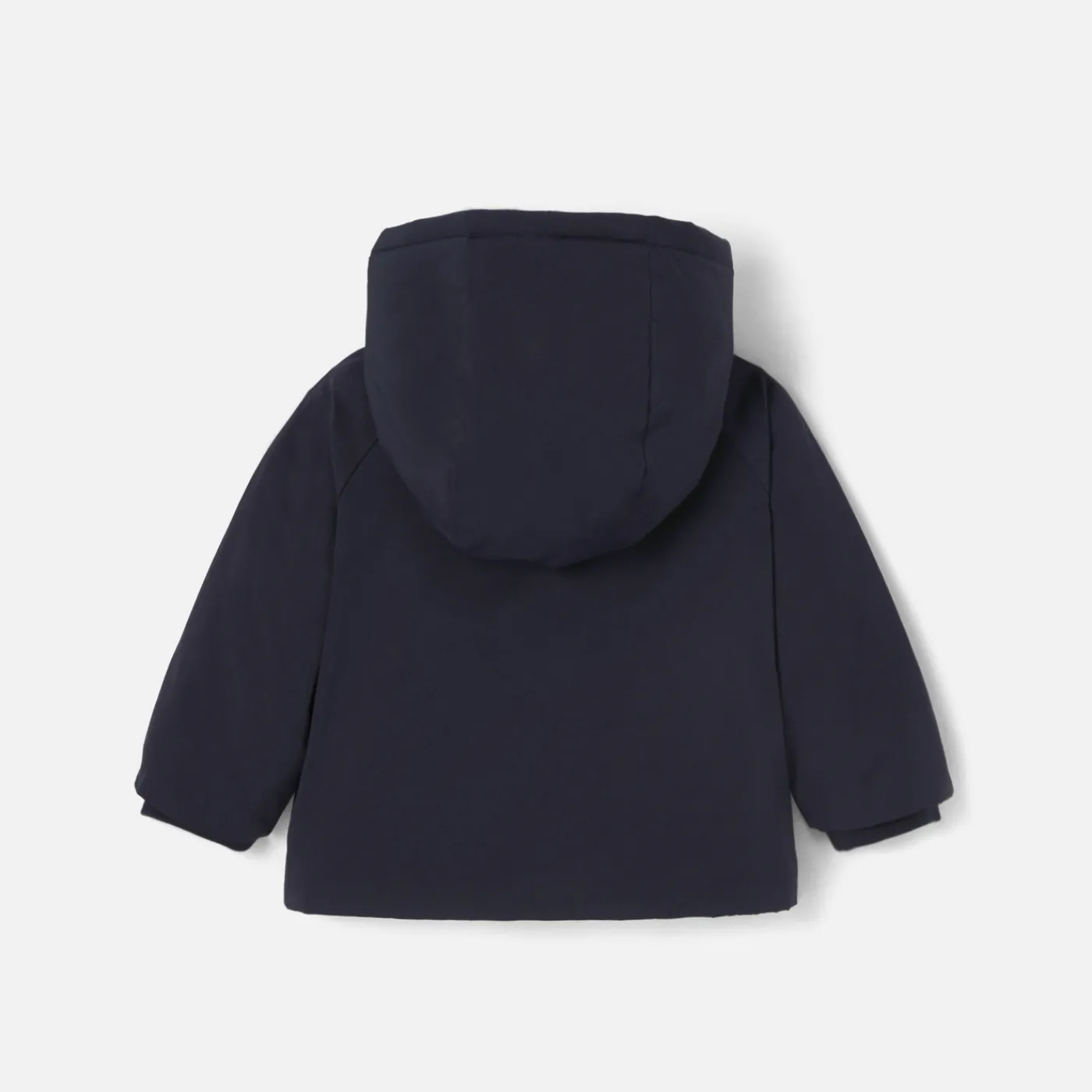 Designed as a little mid-season jacket, the baby boy parka is made from textured nylon. Sporty chic with zipped framis p…
