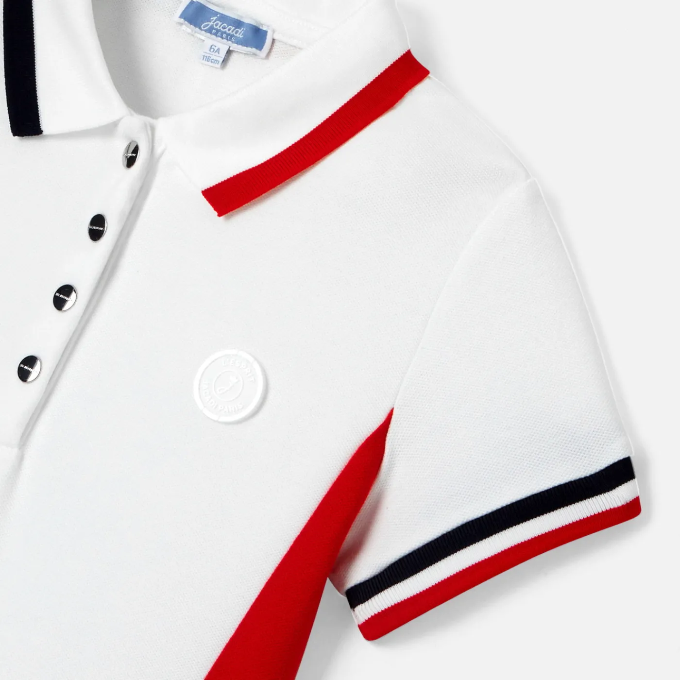 – Polo collar and striped ribbed hem