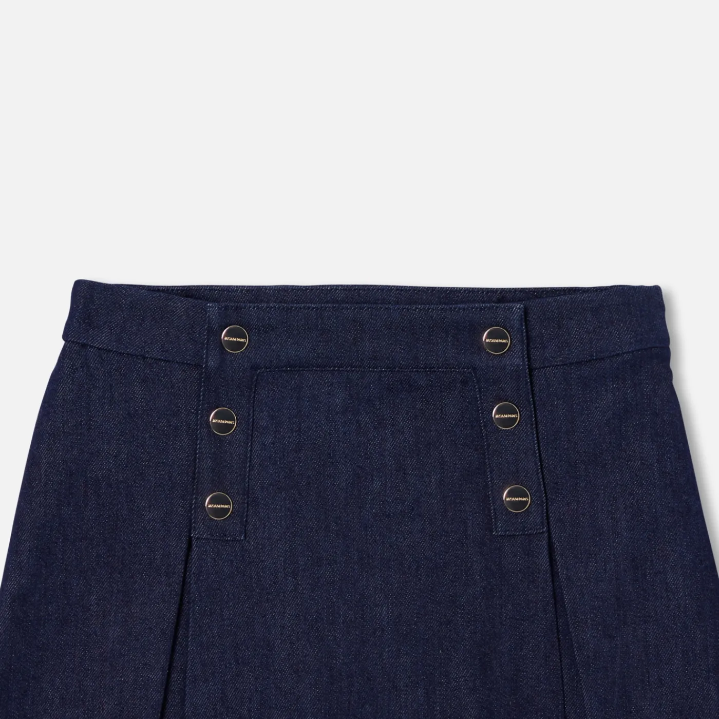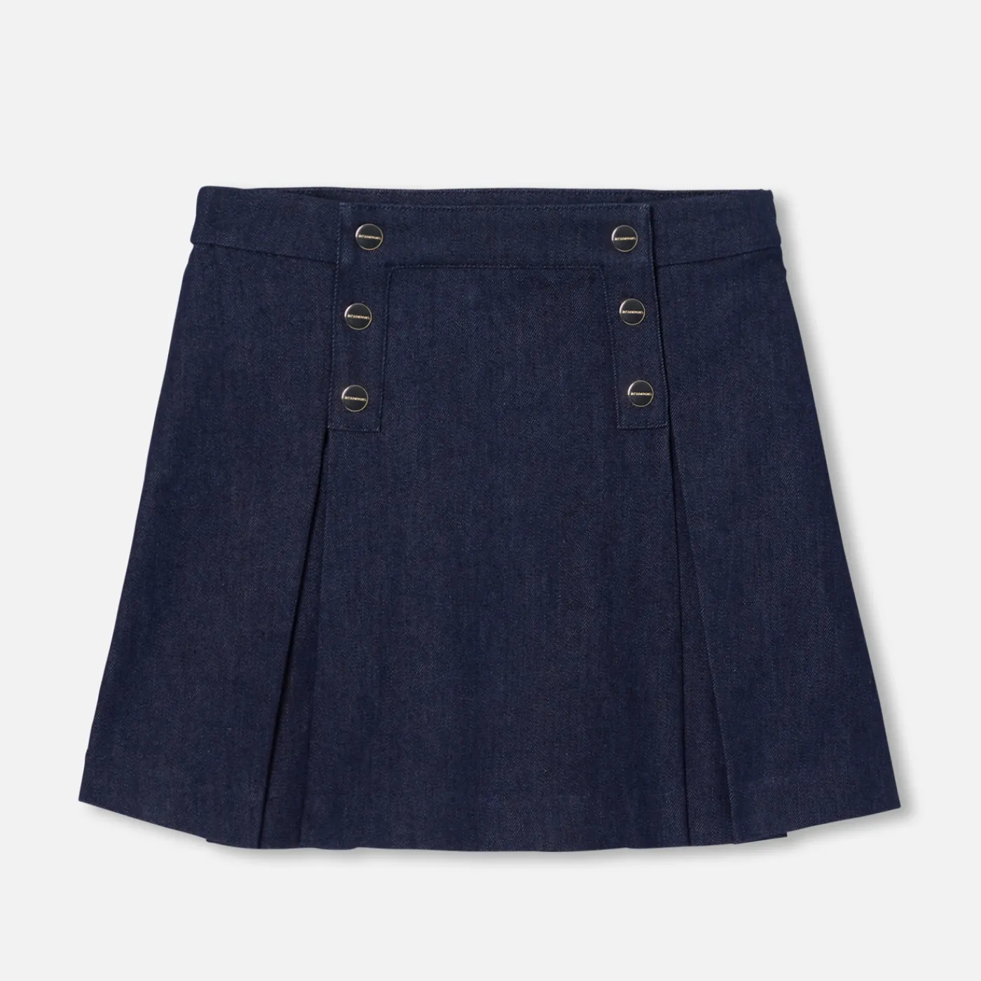 With a chic nautical feel and gold tab-style buttons, this girl skirt is a modern take on denim this fall. Embellished w…