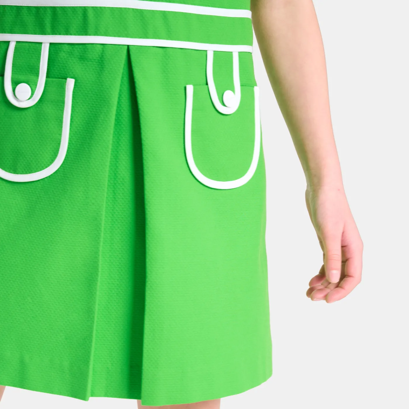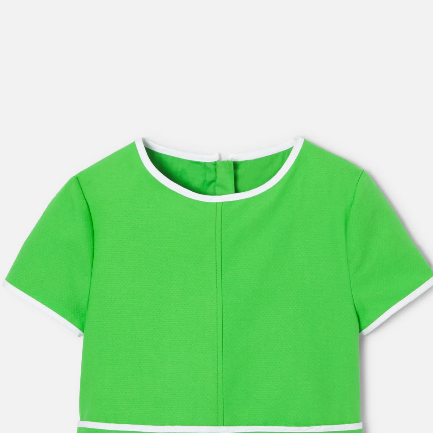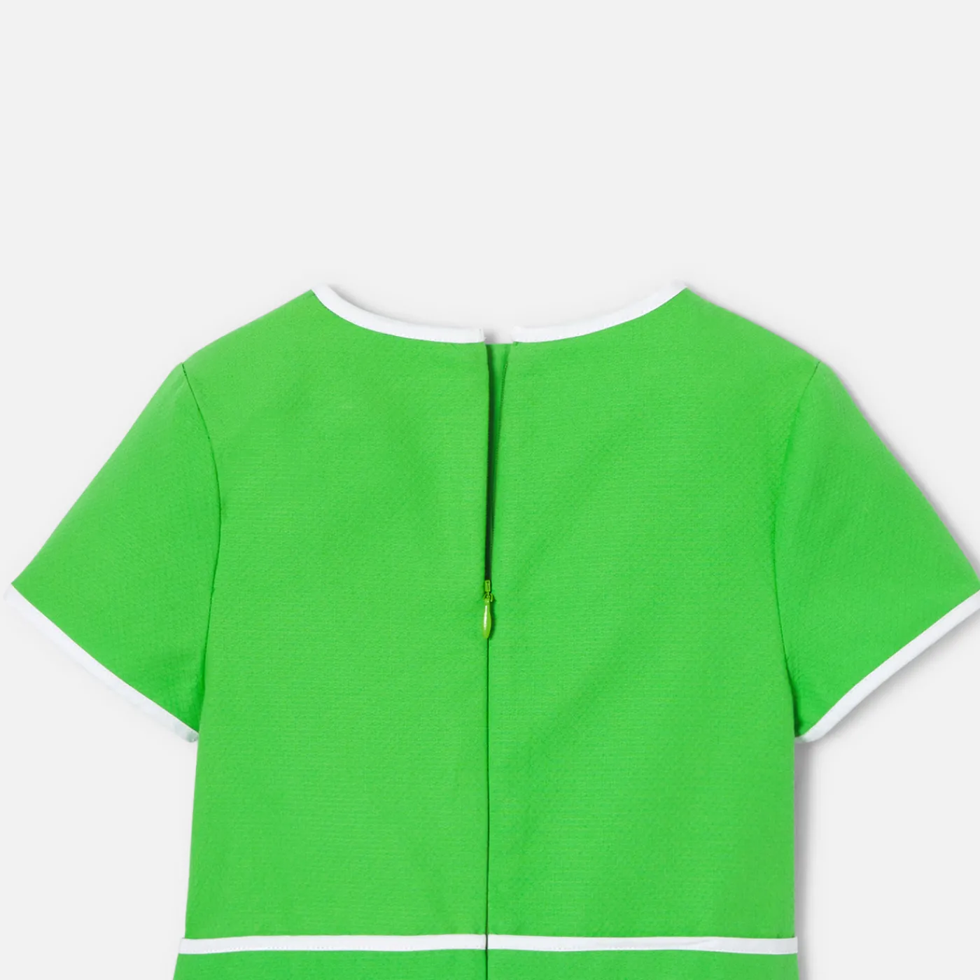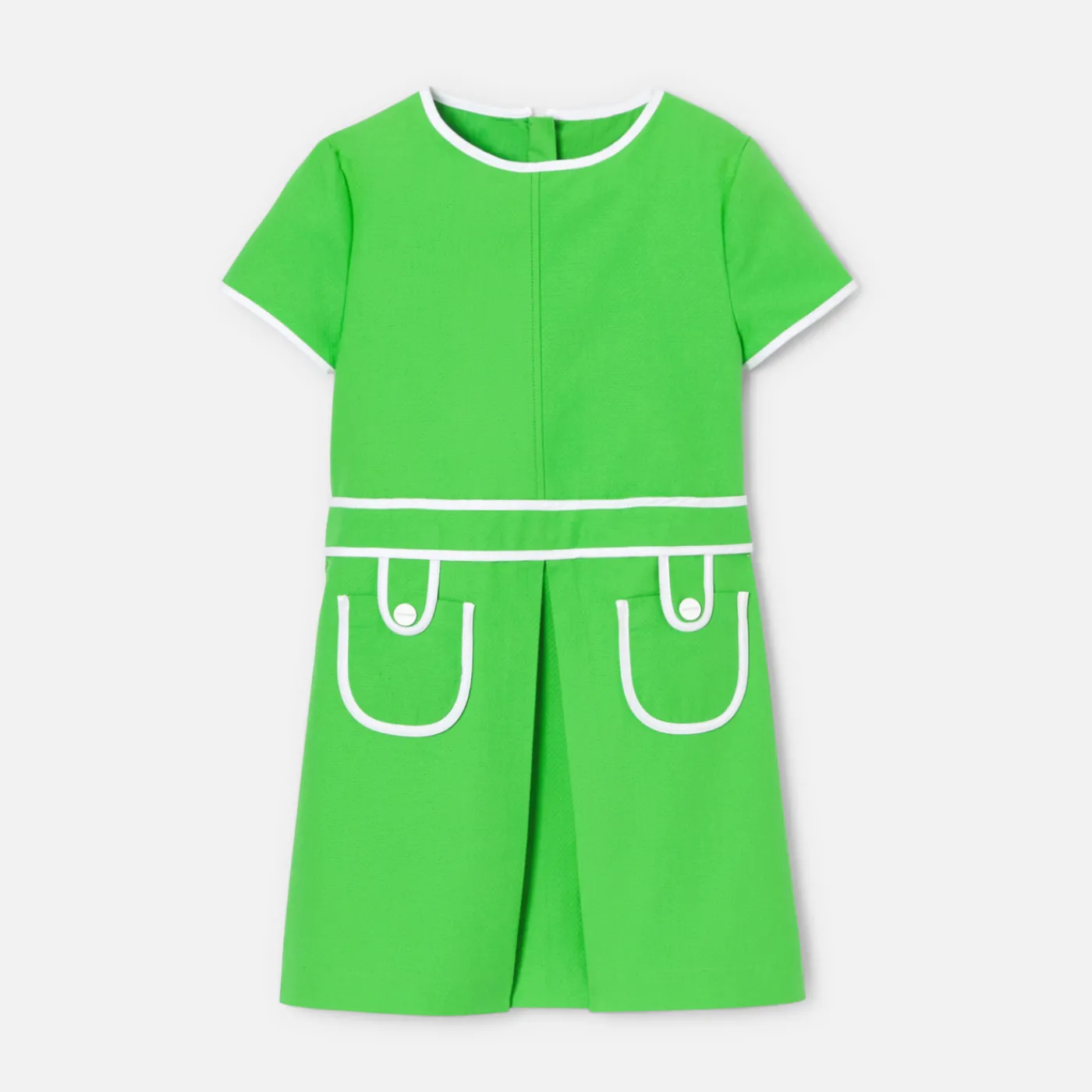 The season is all about retro elegance in this girl dress. In honeycomb piqué, contrasting bias, rounded pockets and a …