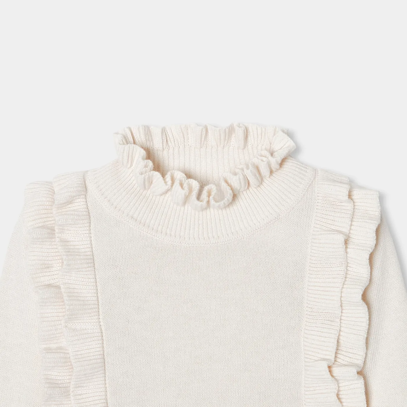 A chic and romantic season with this knitted dress for girls. Made from sustainable wool and cashmere, the high collar, …