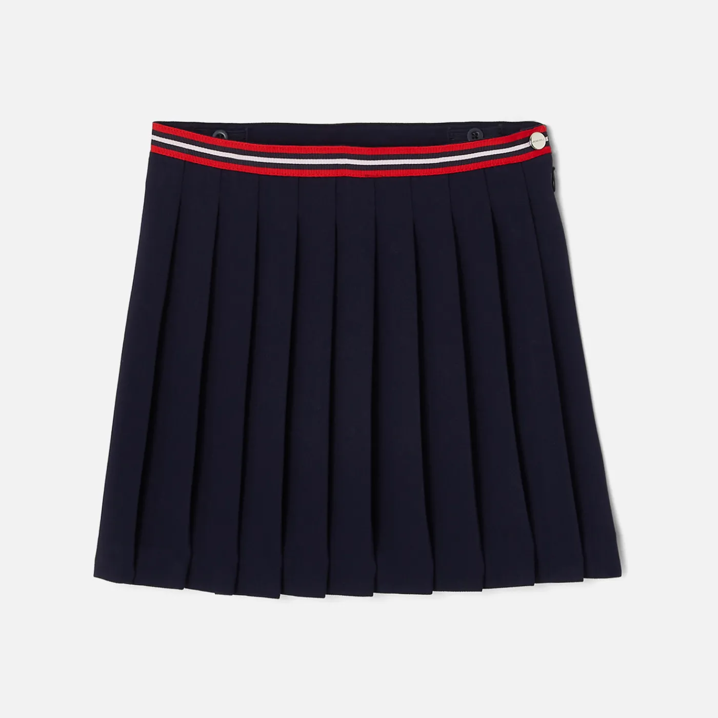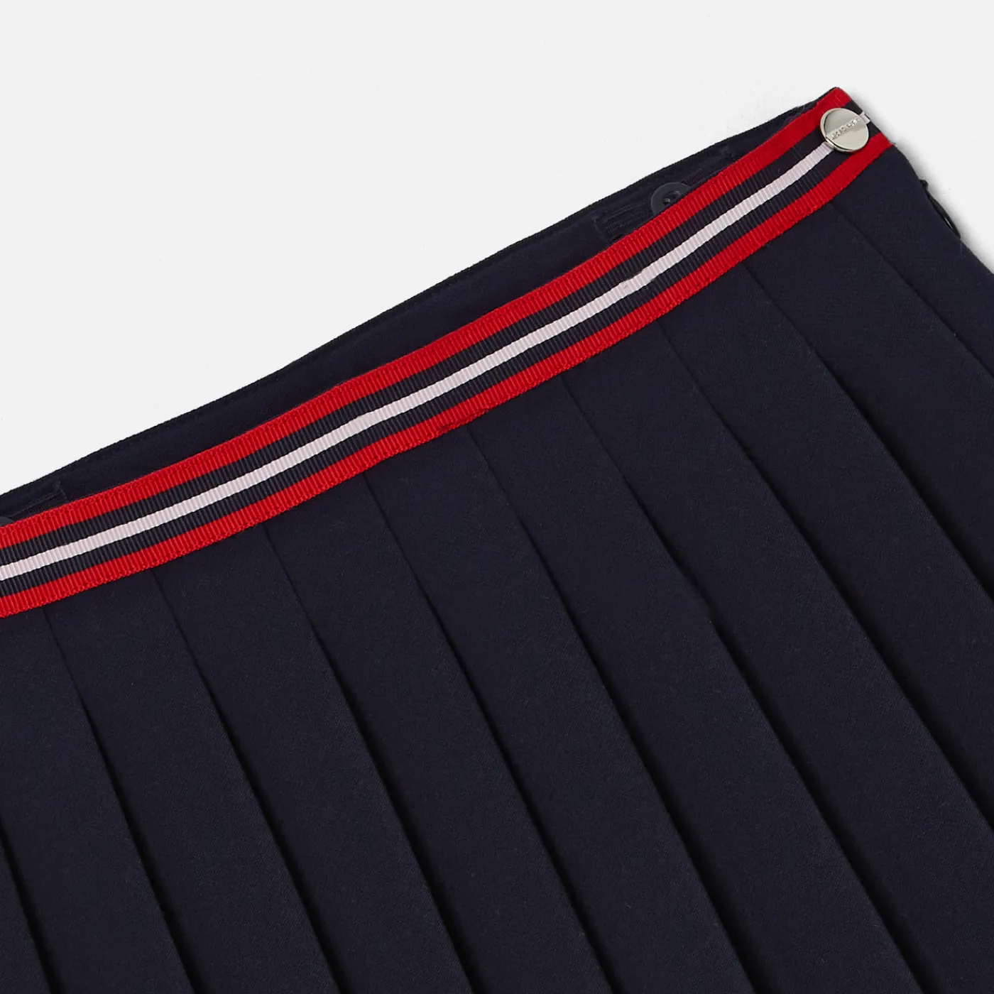 Sport-chic cut inspired by tennis skirts, this permanently pleated girl skirt features a grosgrain striped waistband. Wi…