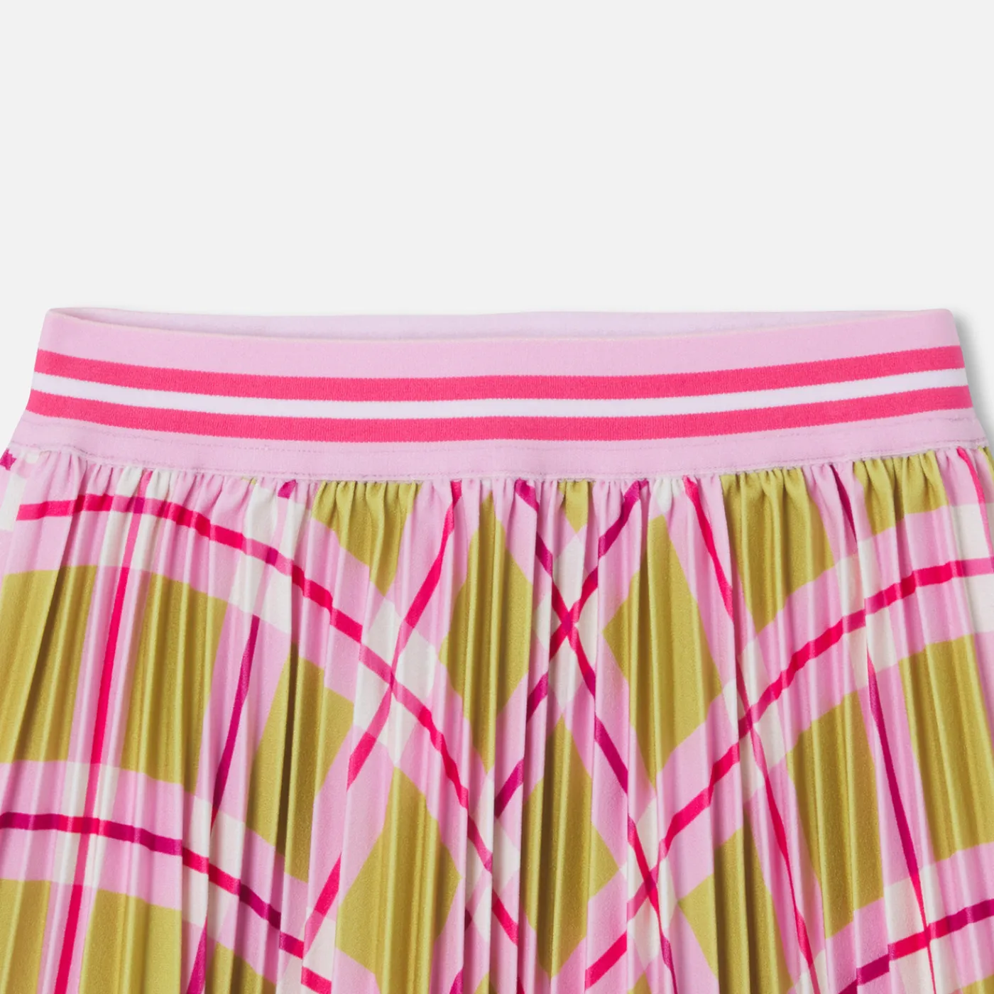 This girl skirt takes on the codes of the very chic tartan kilt for fall. Made from crepe with a hypnotic tartan print, …