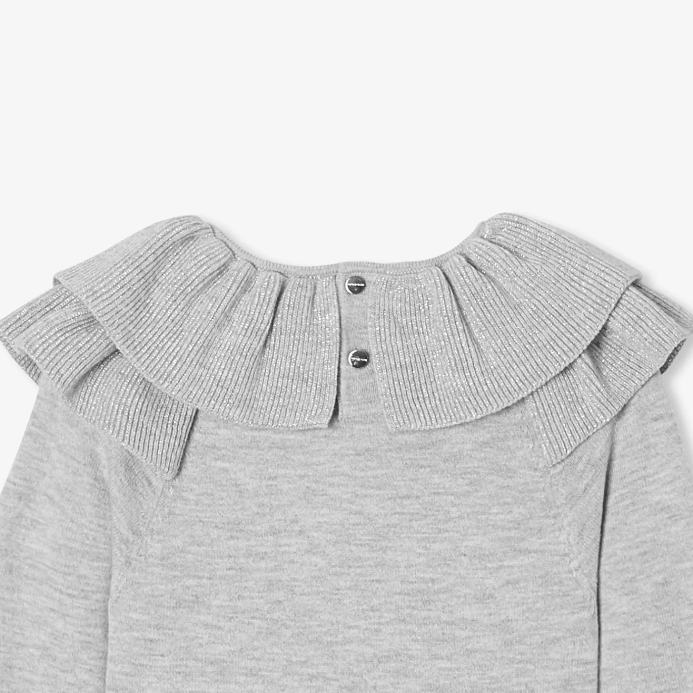 – Tone-on-tone Lurex collar and ruffles on the shoulders