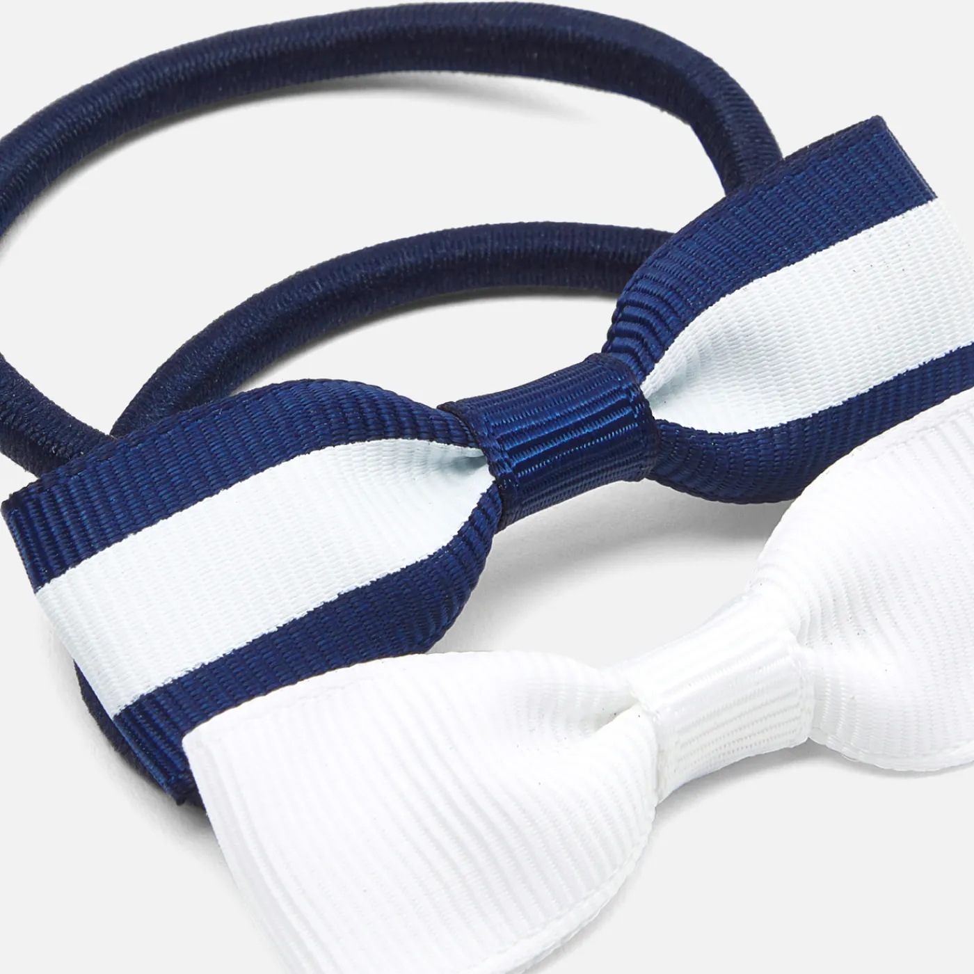 A striped bow has been placed on these girl elastics. Preppy chic and modern, these elastics will perfectly hold ponytai…