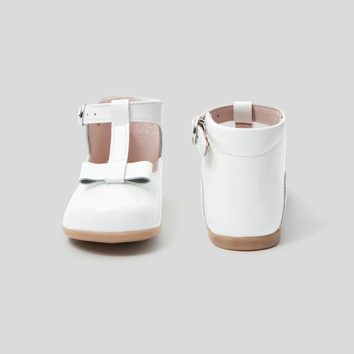 Mary Janes, T-Straps And Ballet Flats-Jacadi Baby girl smooth leather t-bar shoes Jacadi White