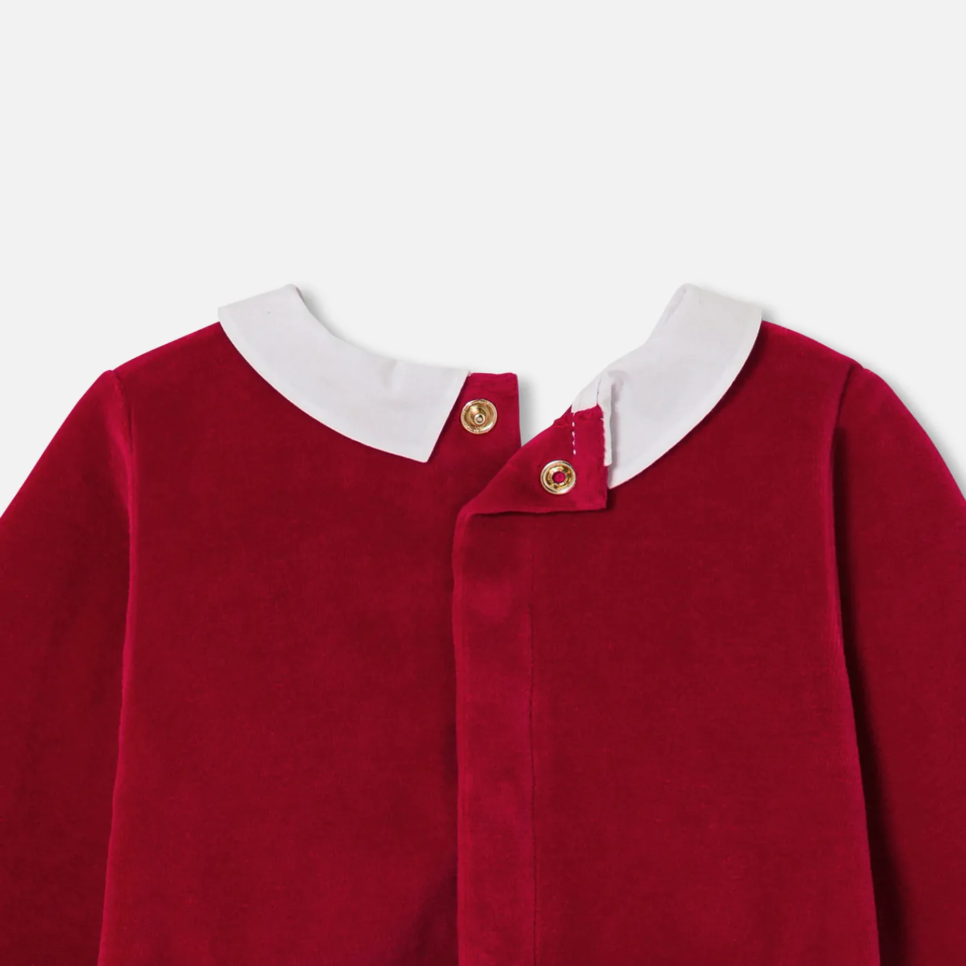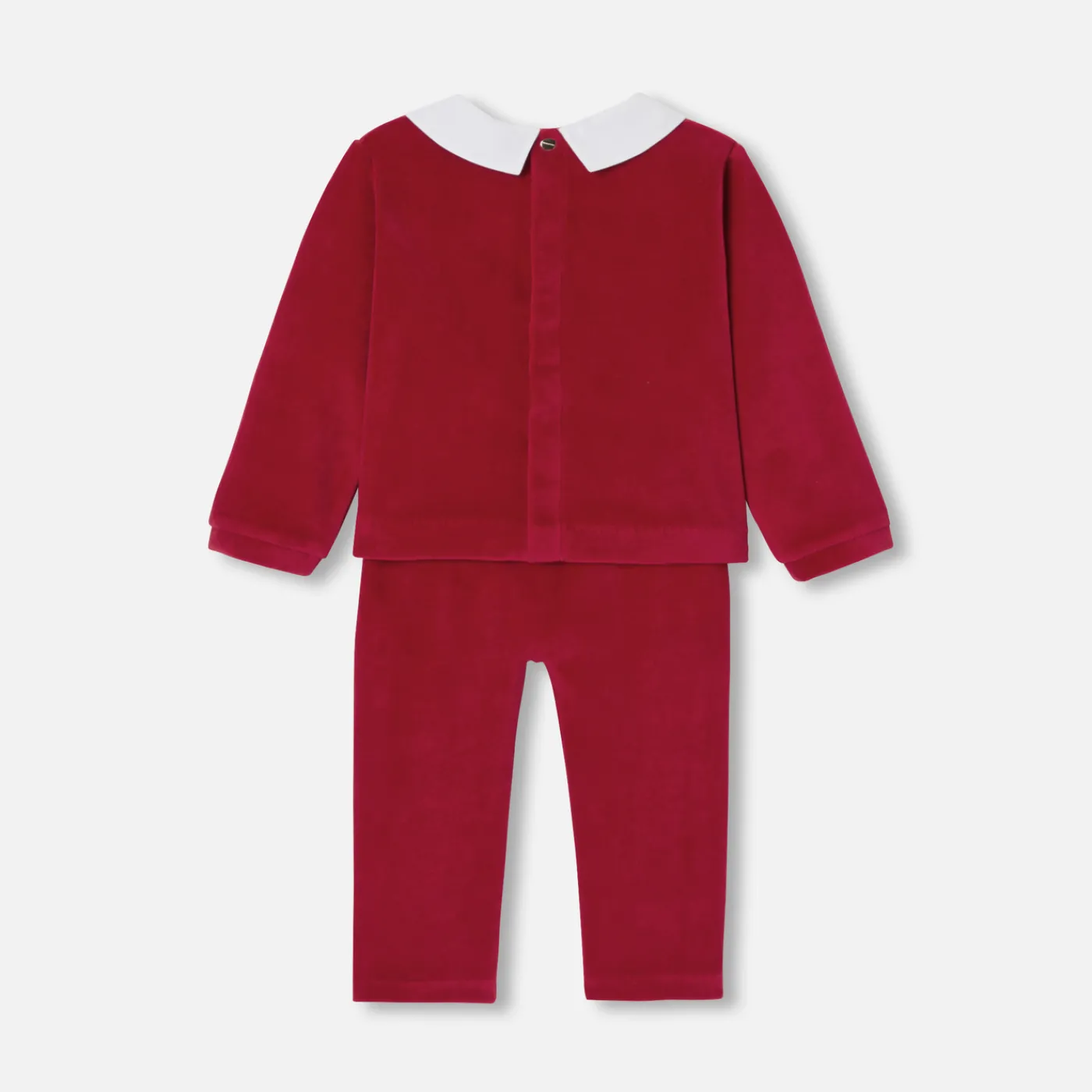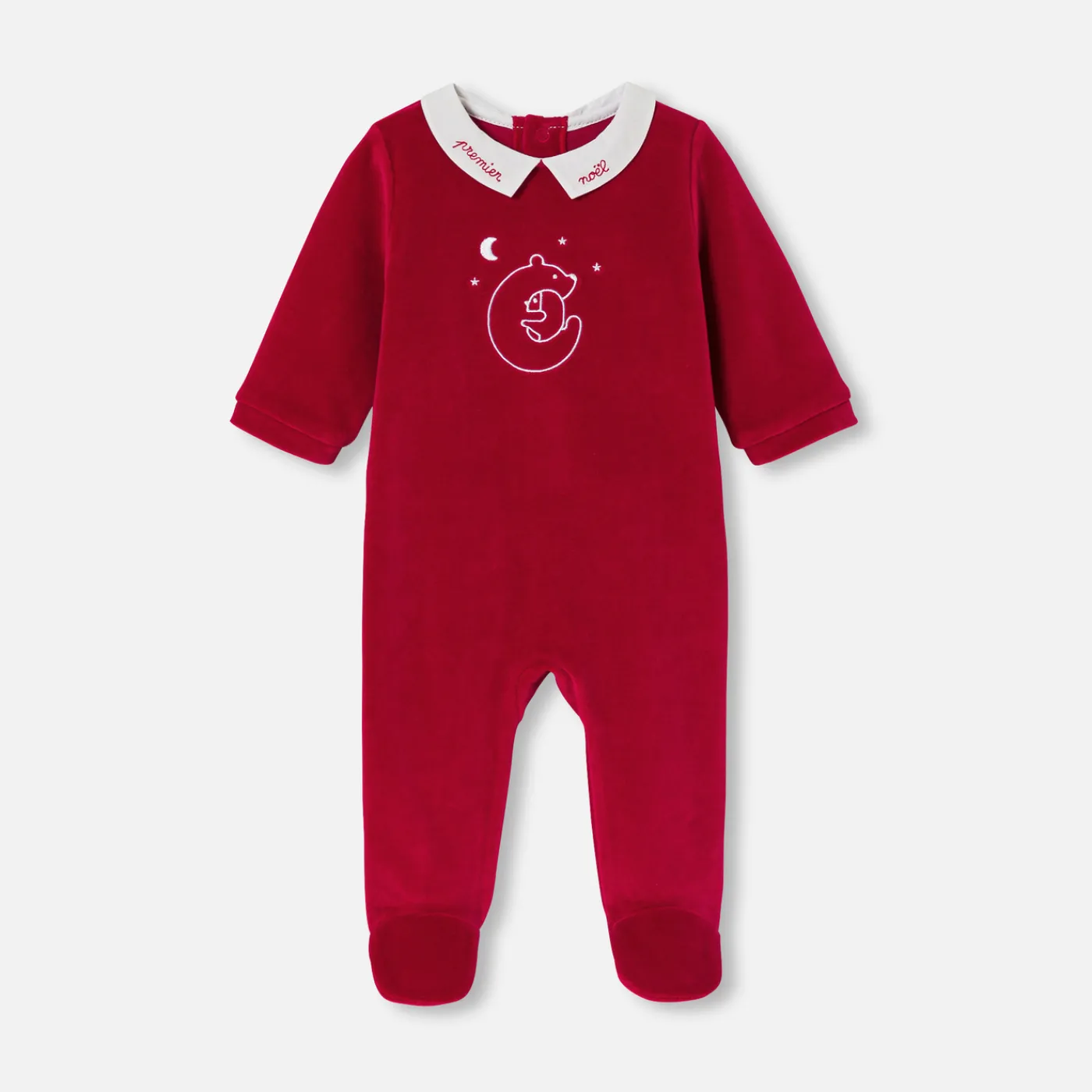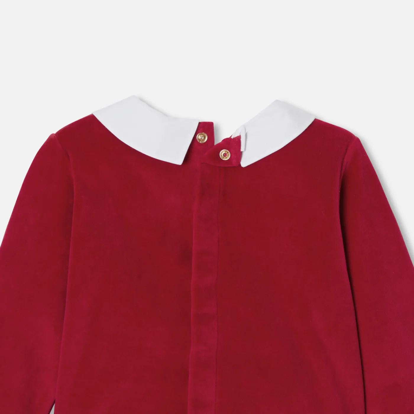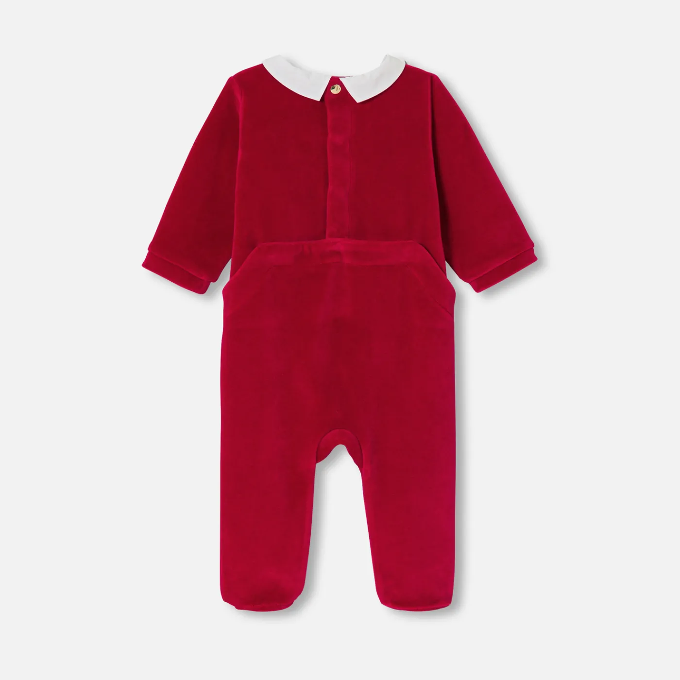 Bring the spirit of Christmas into your little one’s wardrobe with these baby pajamas. In red velvet with a poplin colla…