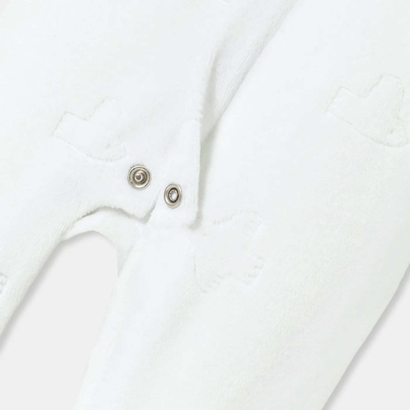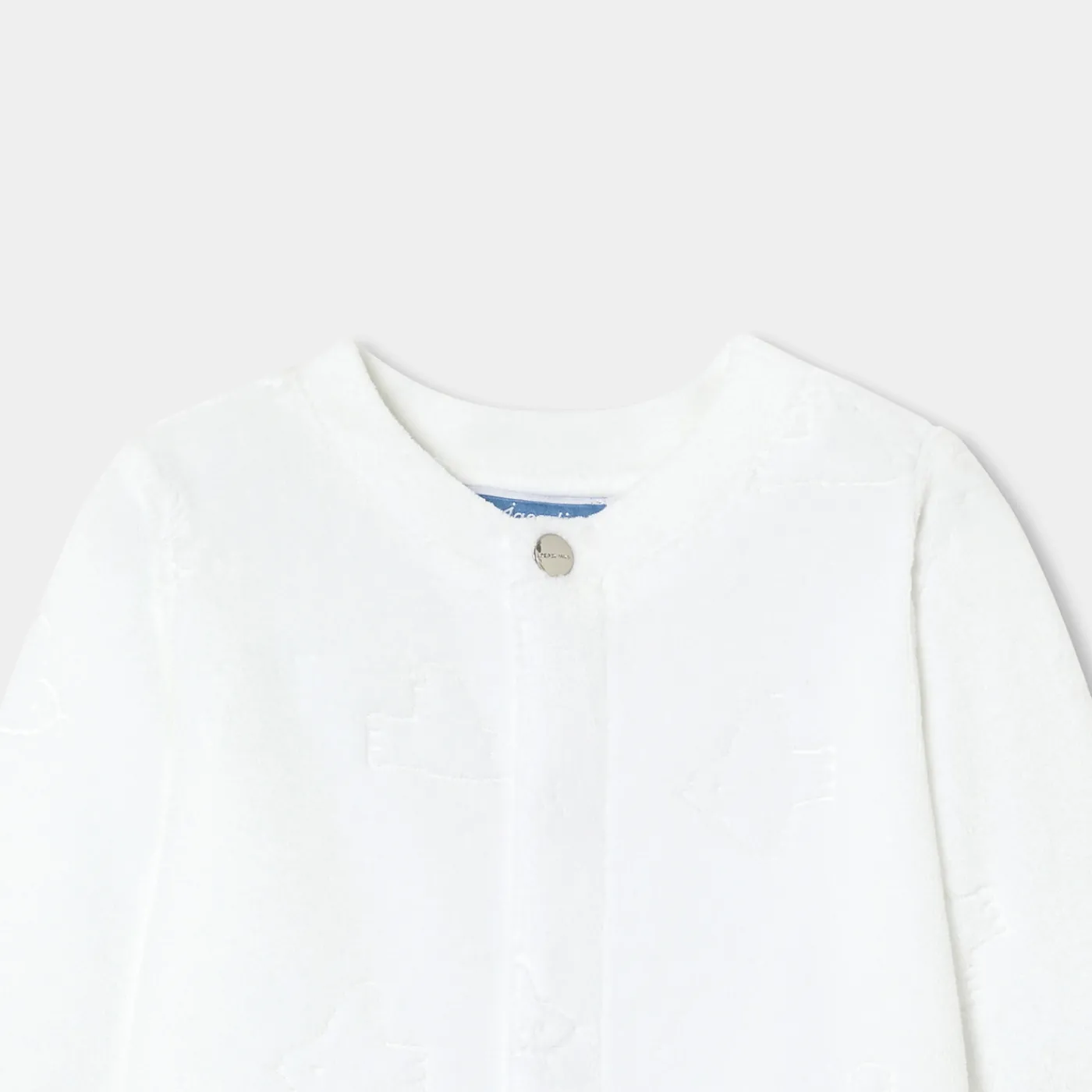 Combining the comfort of soft organic cotton velour with the originality of an enchanting seagulls motif with a devoured…