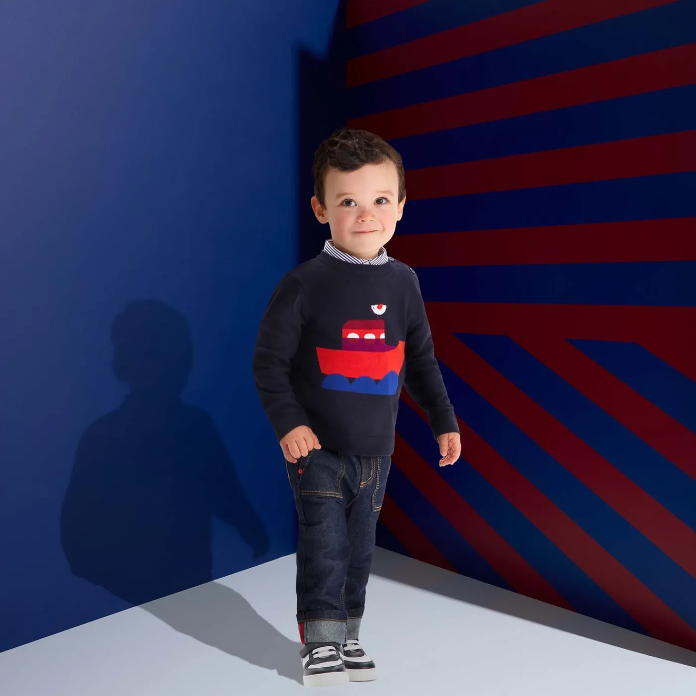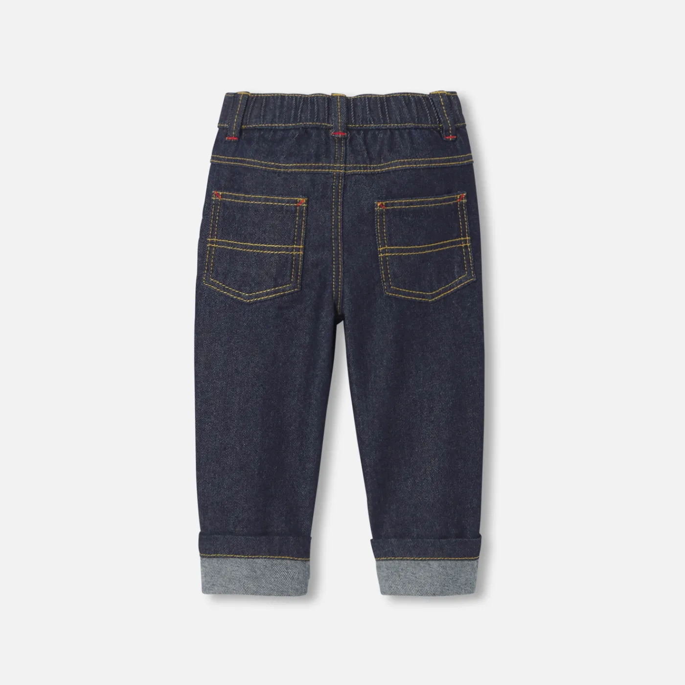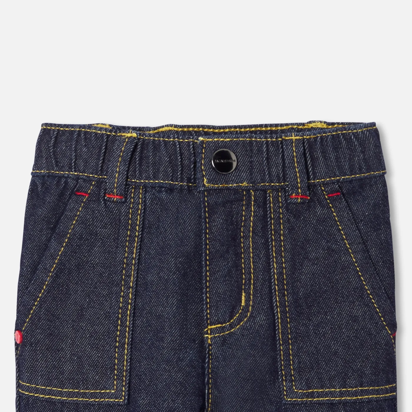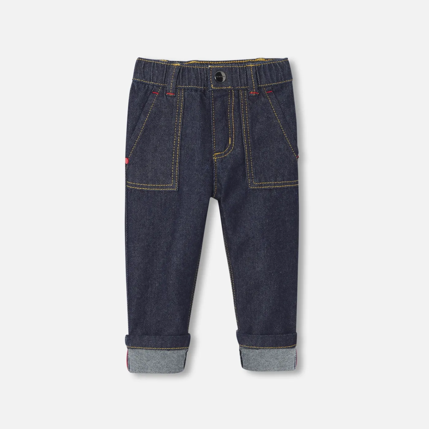 Inspired by Japanese canvas jeans, these baby boy jeans are more modern than ever. More resistant and resolutely contemp…