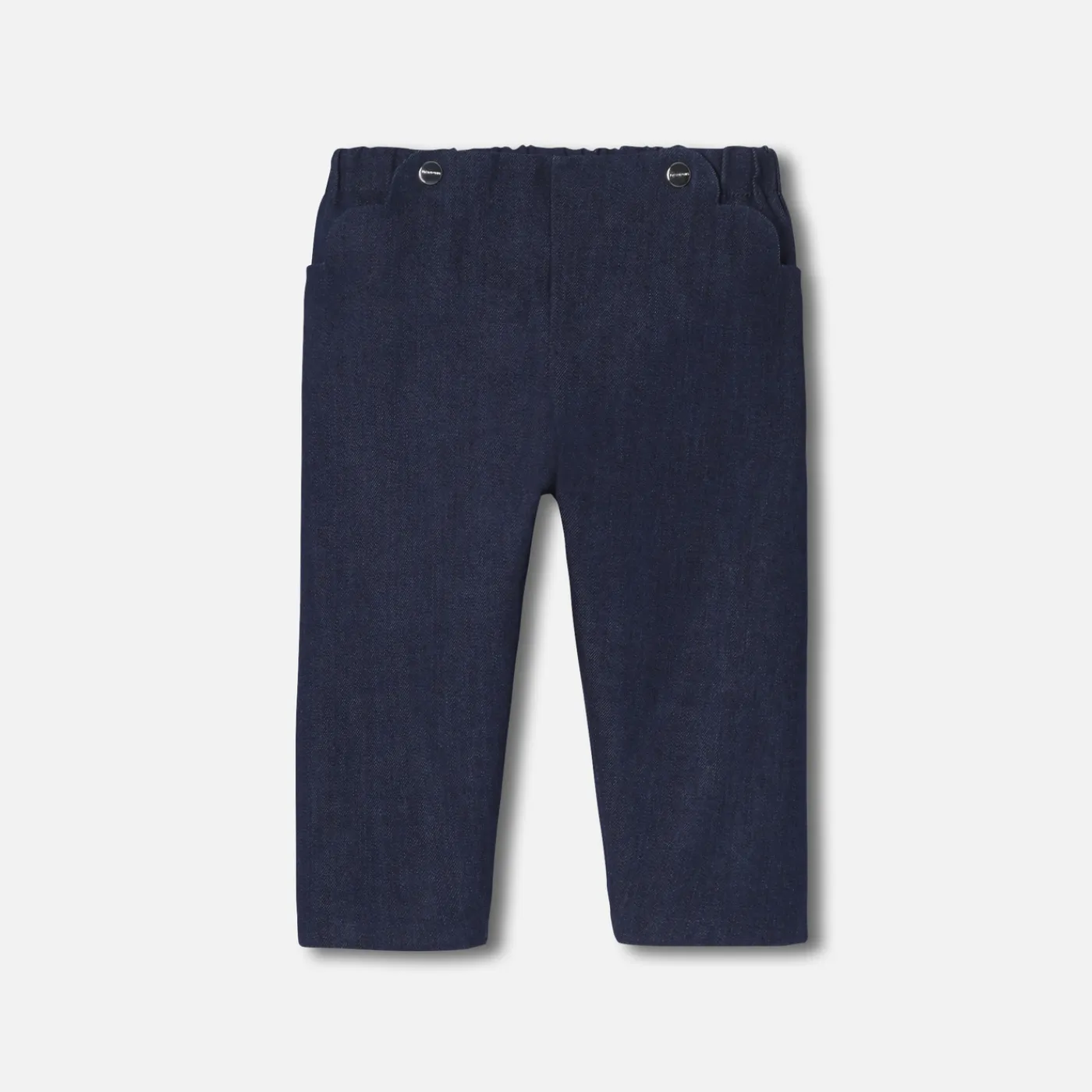 A season of chic and comfort in baby girl jeans. Made from soft, lined fabric, this style features pretty scallops and d…
