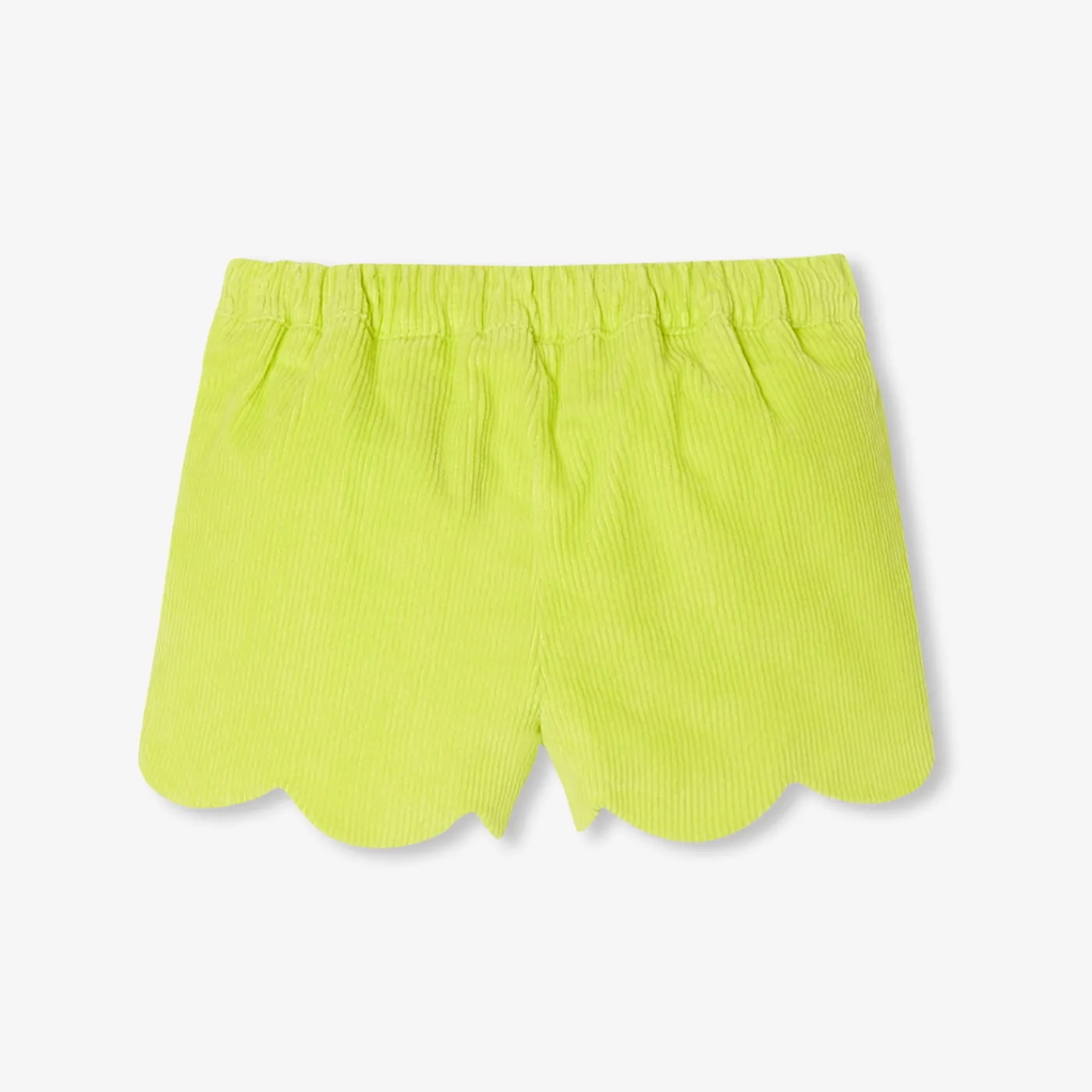 A chic, modern winter with these baby girl shorts. Available in white or acid yellow velvet, the pretty scallops and sil…