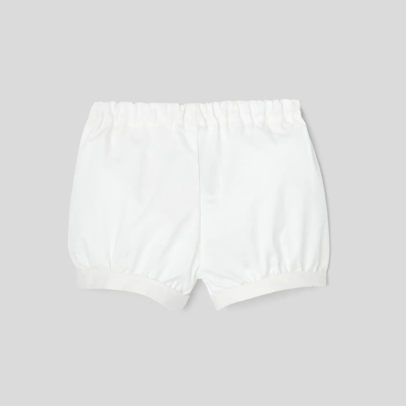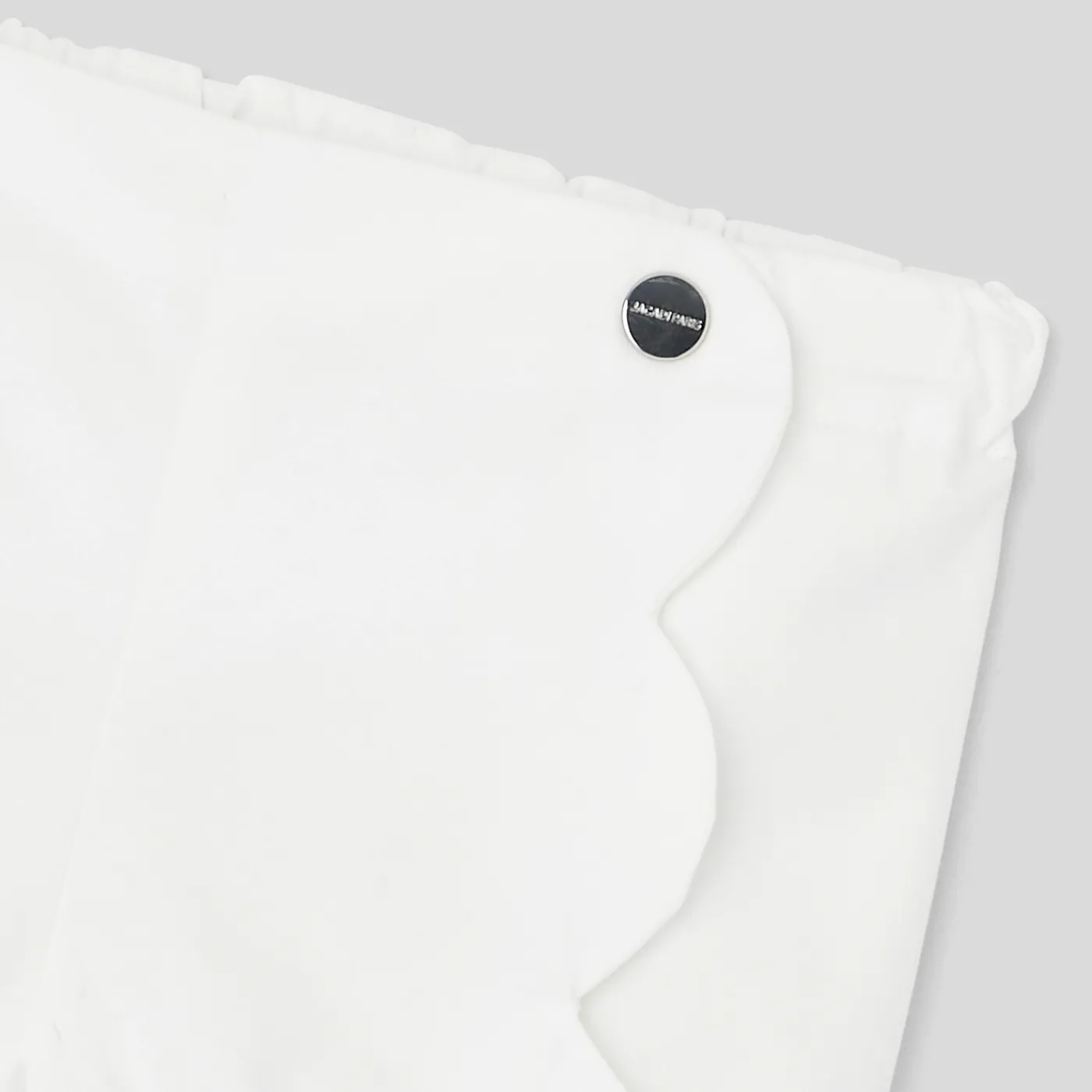 A summer wardrobe essential, these baby girl shorts are adorned with wide scallops. Casual chic and modern with tab snap…