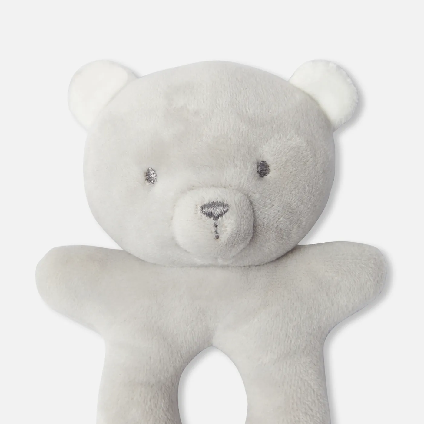 Give baby this charming little rattle to keep him amused and develop his motor skills. Shaped like a soft velvet teddy b…