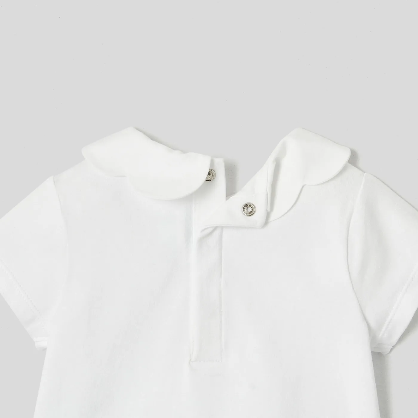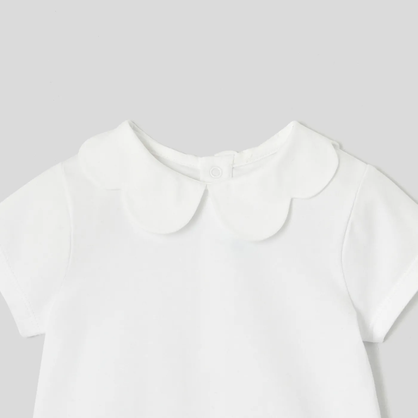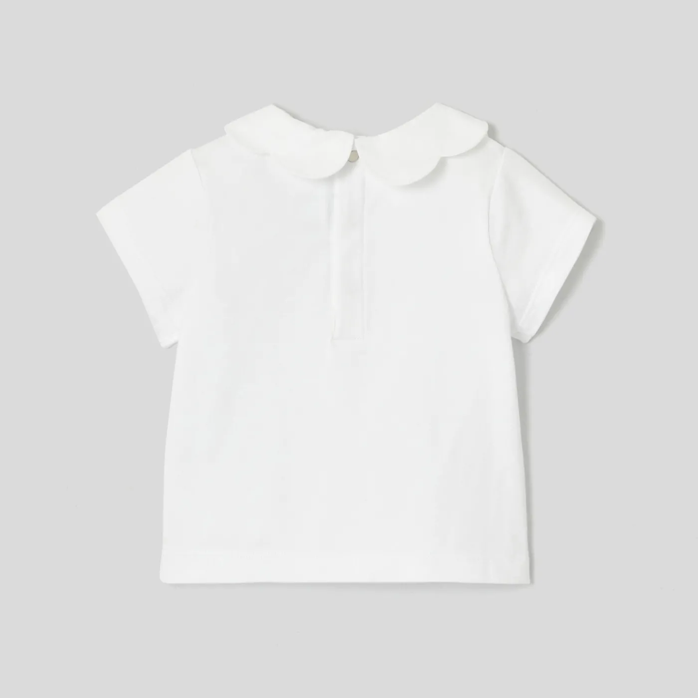 A wardrobe essential, this baby girl t-shirt is enhanced by a scalloped collar. Soft and comfortable, this organic cotto…